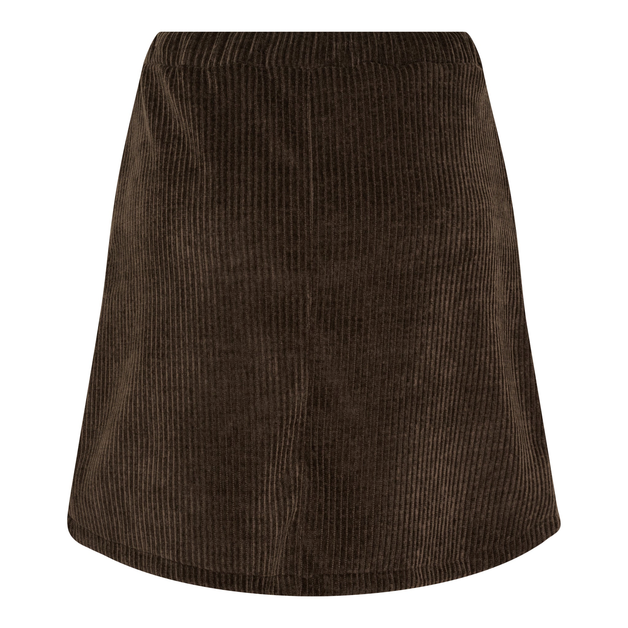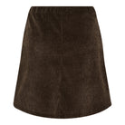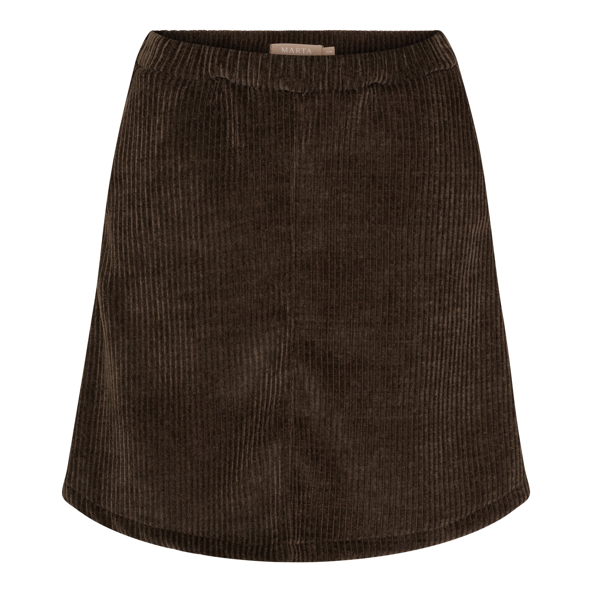 Denne nederdel forener blød struktur med et enkelt, tidløst snit. Den brede fløjlskvalitet giver et lækkert, taktilt udtryk, hvor de lodrette ribbaner tilfører dybde og et diskret, elegant spil i stoffet. Pasformen er let A-formet, hvilket giver et naturligt fald og en flatterende silhuet, der er nem at style både casual og mere dressed.