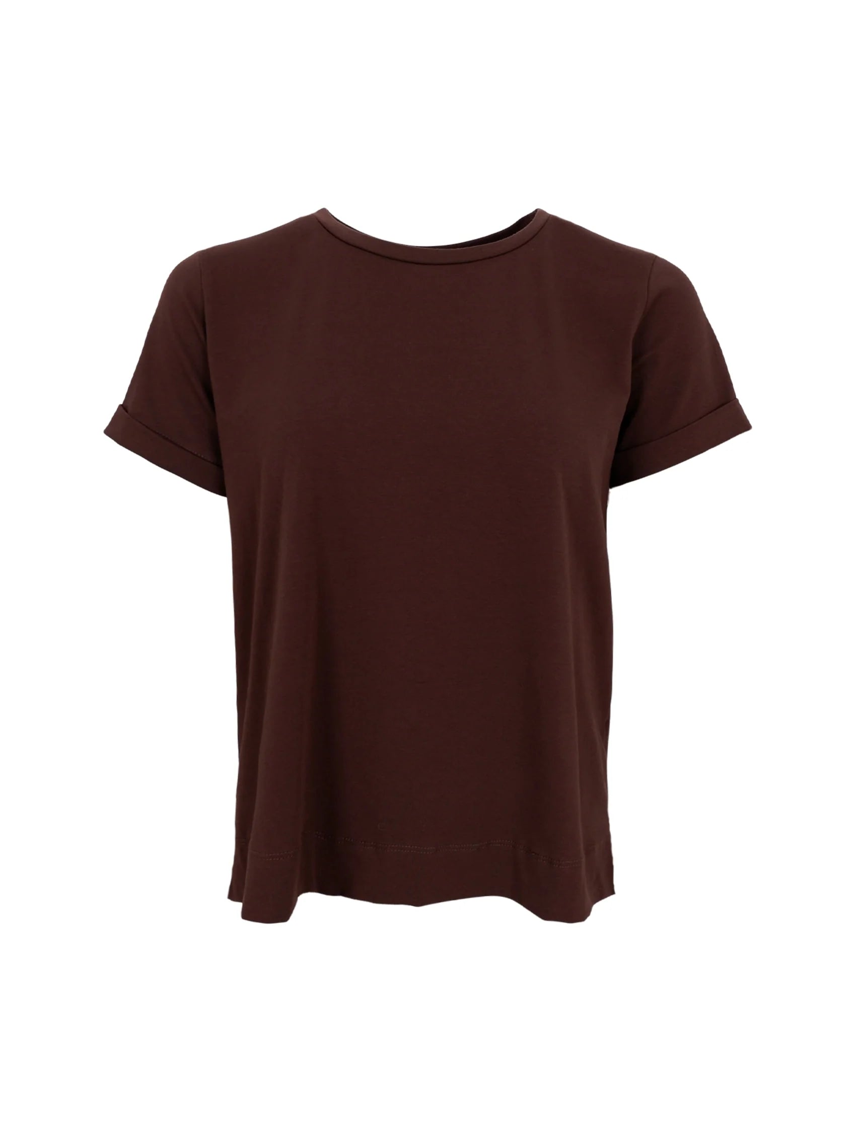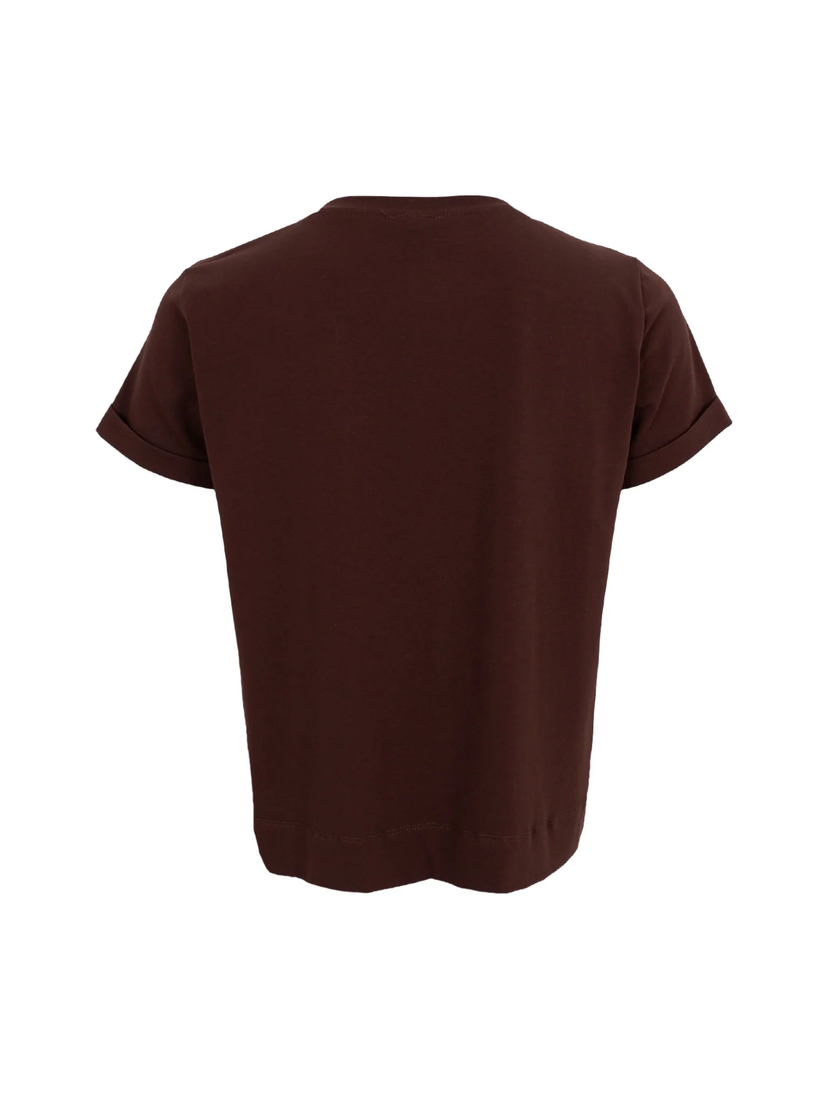 Den klassiske rundhals og de korte ærmer med let ombuk giver et tidløst og afslappet udtryk, mens den lige pasform sikrer høj komfort hele dagen. En uundværlig del af garderoben, der fungerer perfekt både alene og som del af et lag-på-lag look.