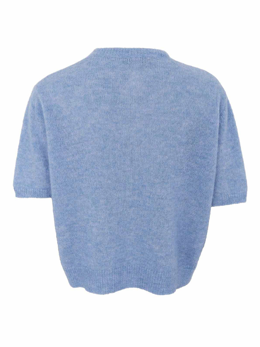 Designet er udført med rund halsudskæring og en klassisk knaplukning foran, som understreger det rene og elegante udtryk. De korte ærmer giver et let og moderne look, mens ribkanter ved hals, ærmer og bund sikrer en flot og velformet afslutning.