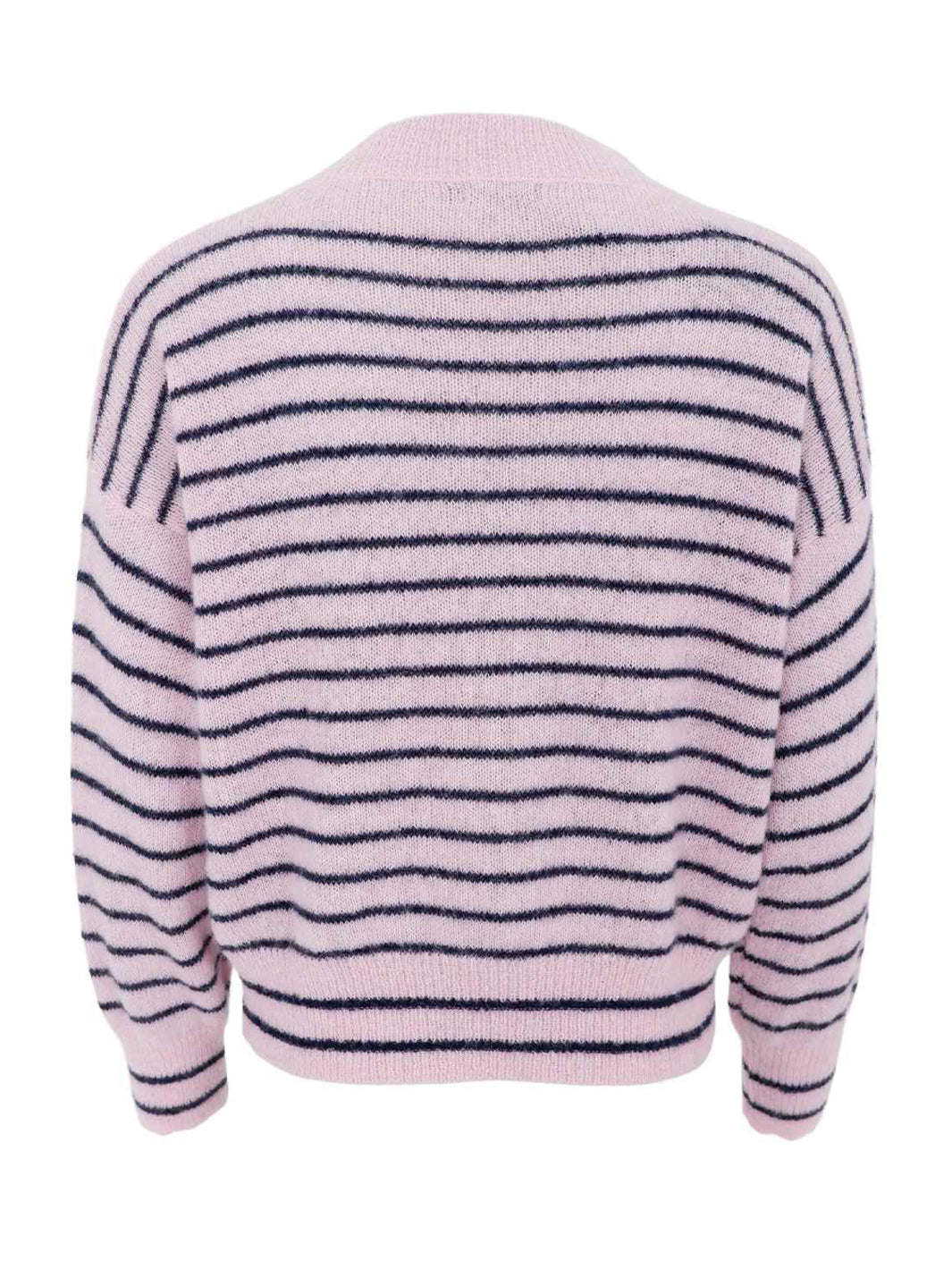 Denne striktrøje har et blødt og afslappet udtryk med et tidløst, horisontalt stribet design, der giver et klassisk og anvendeligt look. Den lette strikkvalitet føles behagelig mod huden og gør trøjen ideel til både hverdagsbrug og afslappede anledninger.