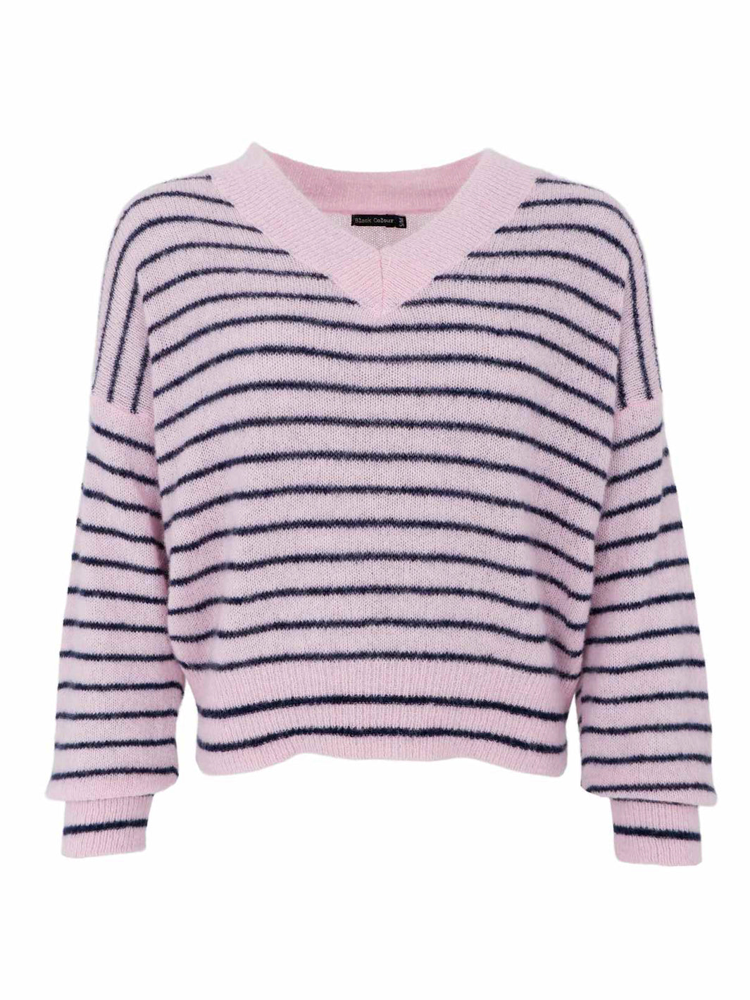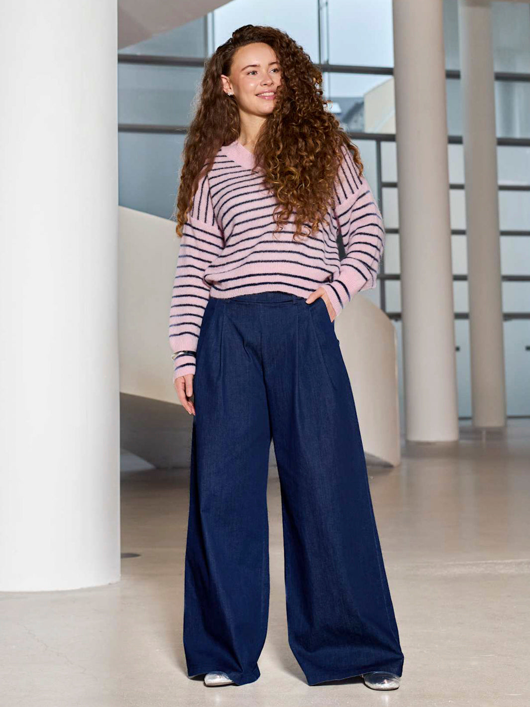 En alsidig striktrøje, der nemt kan styles med både jeans, bukser eller nederdel – perfekt til et afslappet og stilfuldt hverdagslook.
