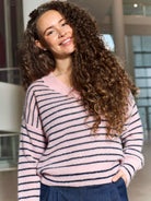 BC Dell striped v-neck jumper rose
