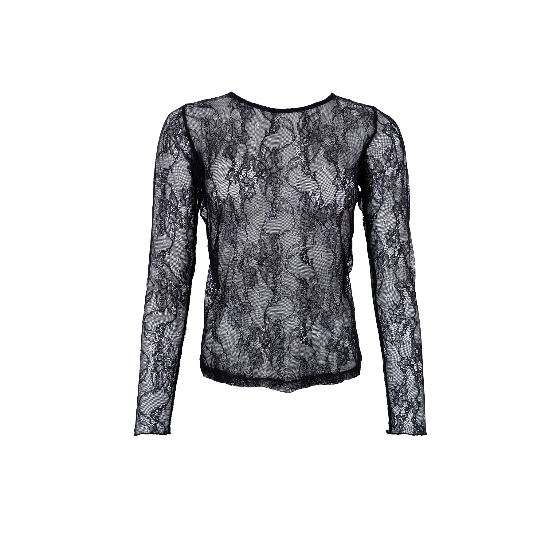 Denne fine blondebluse er et elegant og feminint item, der tilfører kant og lethed til både hverdag og fest. Den gennemsigtige blonde har et smukt blomsterinspireret mønster, der giver blusen et sofistikeret look.