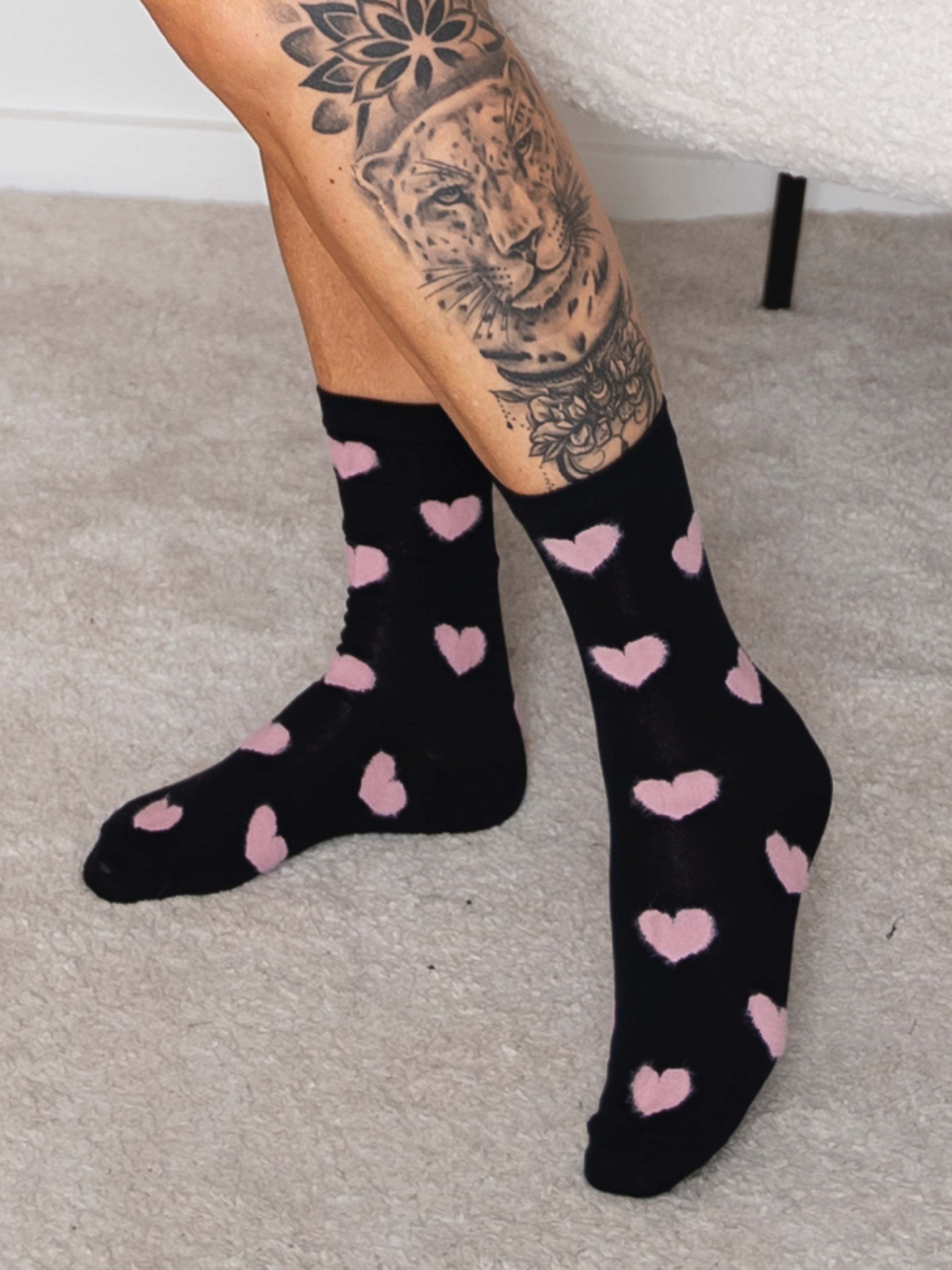 Disse fine sokker med hjerter er både søde og sjove – perfekte til at pifte ethvert outfit op med lidt kærlighed!