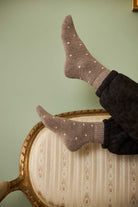 Disse prikkede strømper er en hyggelig og sød tilføjelse til garderoben. De er strikket i en blød og lun kvalitet, der giver masser af komfort til både afslappede hjemmedage og hverdagsbrug i støvler eller sneakers.