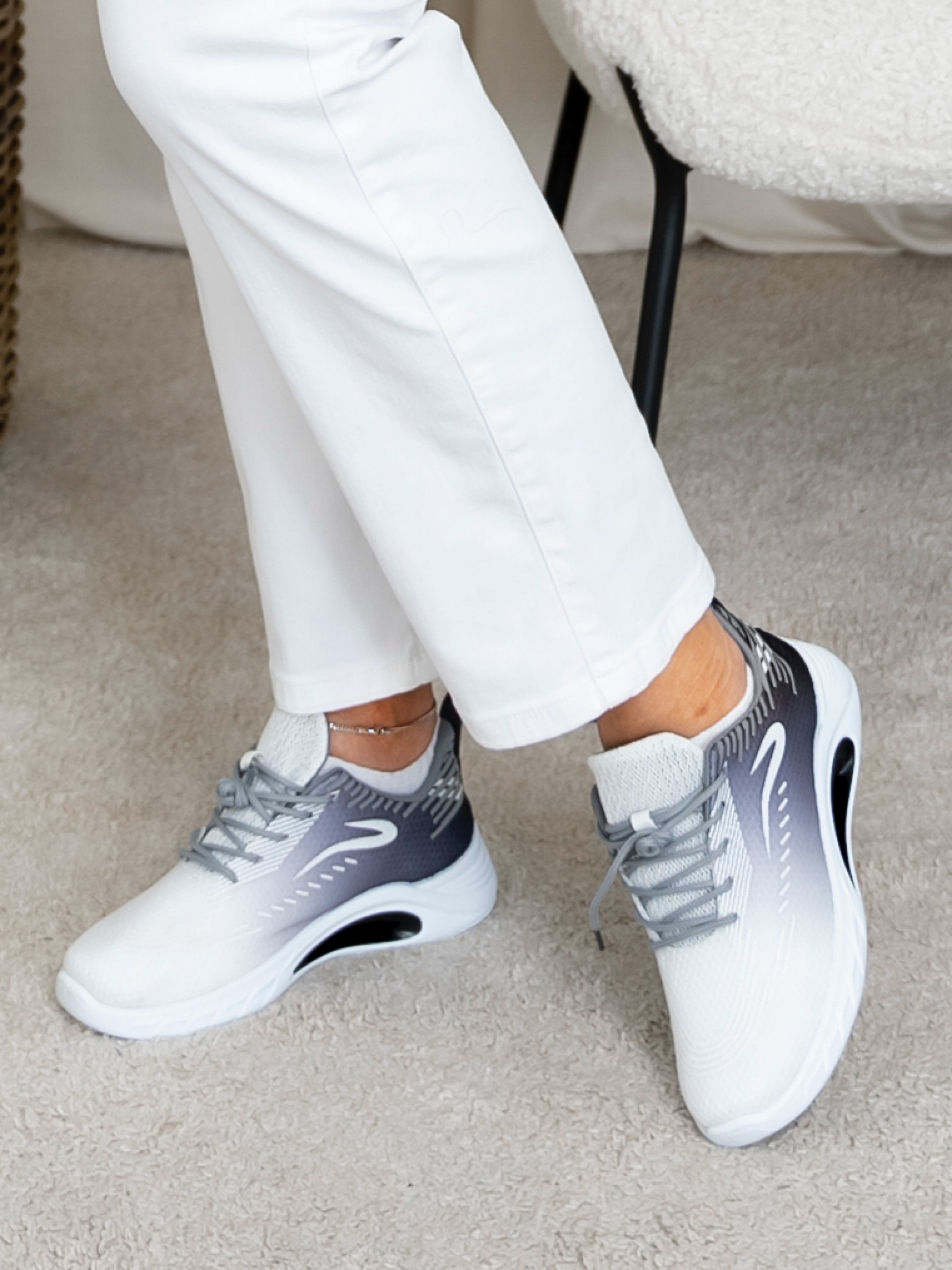 Disse sneakers kombinerer stil og komfort på bedste vis. Det lette og åndbare materiale sikrer maksimal komfort hele dagen, mens den ergonomiske sål giver optimal støtte til dine fødder. Det moderne design med elegante detaljer gør dem perfekte til både afslappede og sporty outfits.