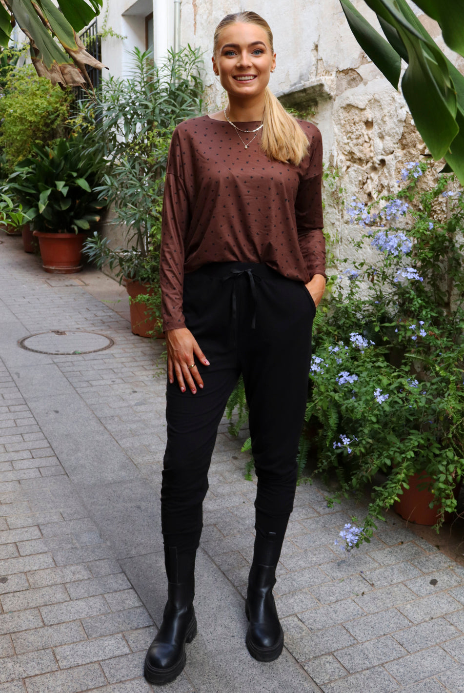 Bukserne er fremstillet af et blødt og strækbart materiale, der giver en behagelig fornemmelse hele dagen. Det klassiske design med knaplukning foran og lommer både foran og bagpå gør dem både praktiske og trendy. De er nemme at style med både casual toppe og mere elegante overdele, hvilket gør dem utroligt alsidige.