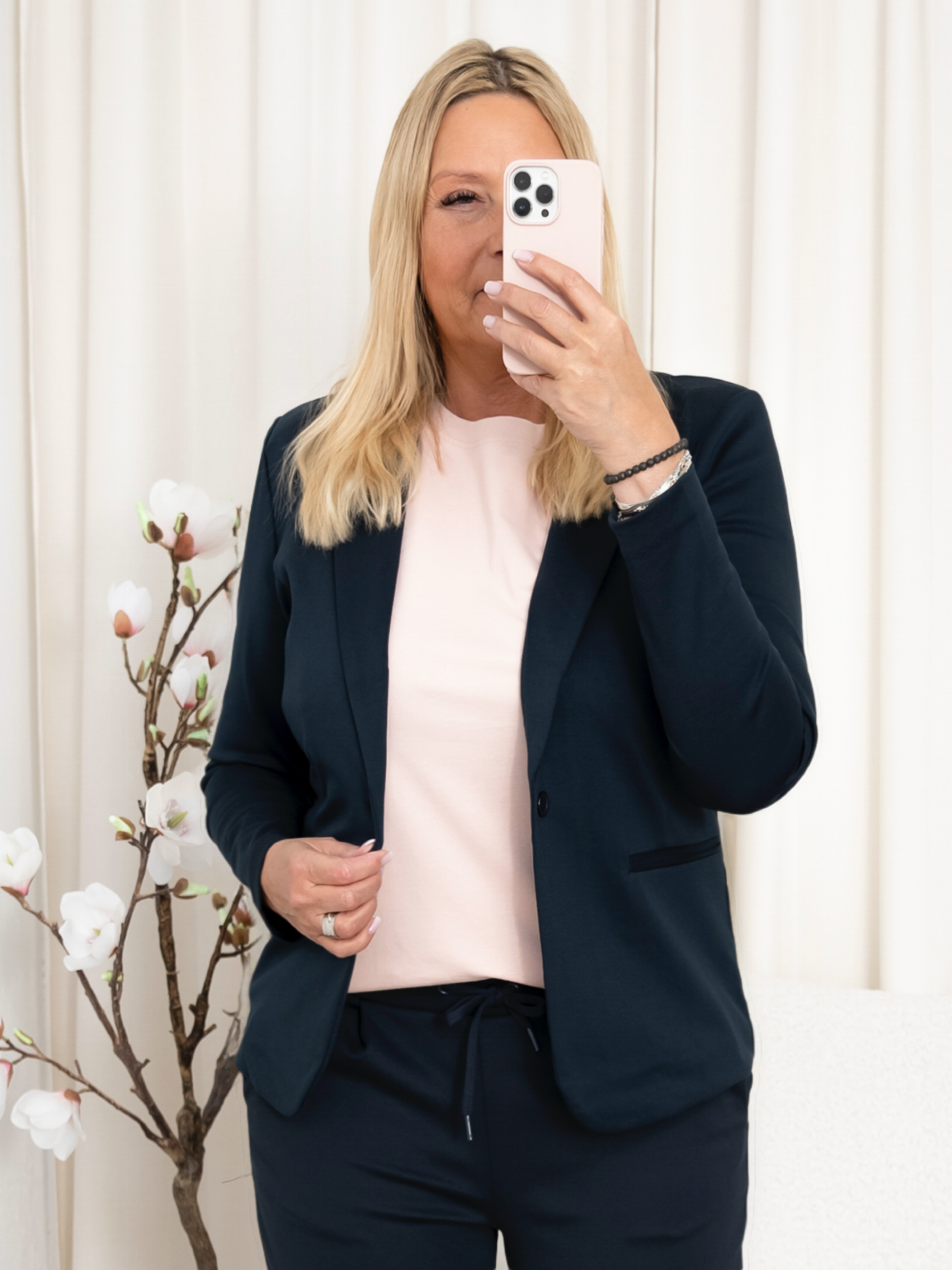 Denne blazer er et alsidigt stykke tøj, der nemt kan styles med både bukser og nederdele for et professionelt look, eller over en kjole for et mere afslappet, men stadig elegant outfit. En uundværlig tilføjelse til din garderobe, når du vil udstråle selvsikkerhed og stil.
