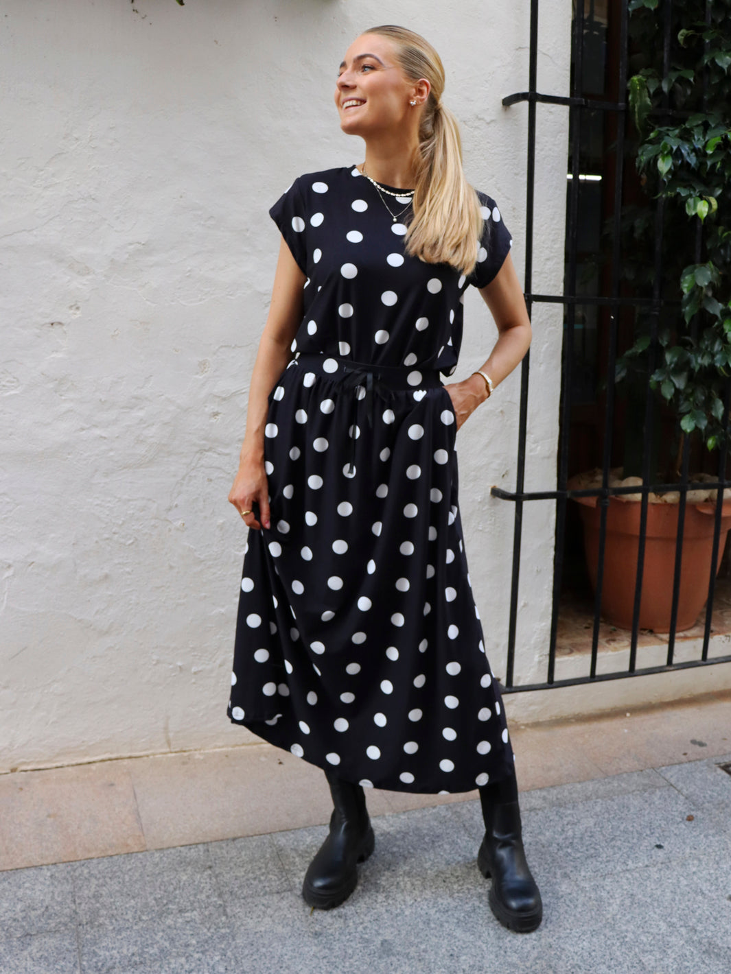 Liberté Alma loose skirt black big dot