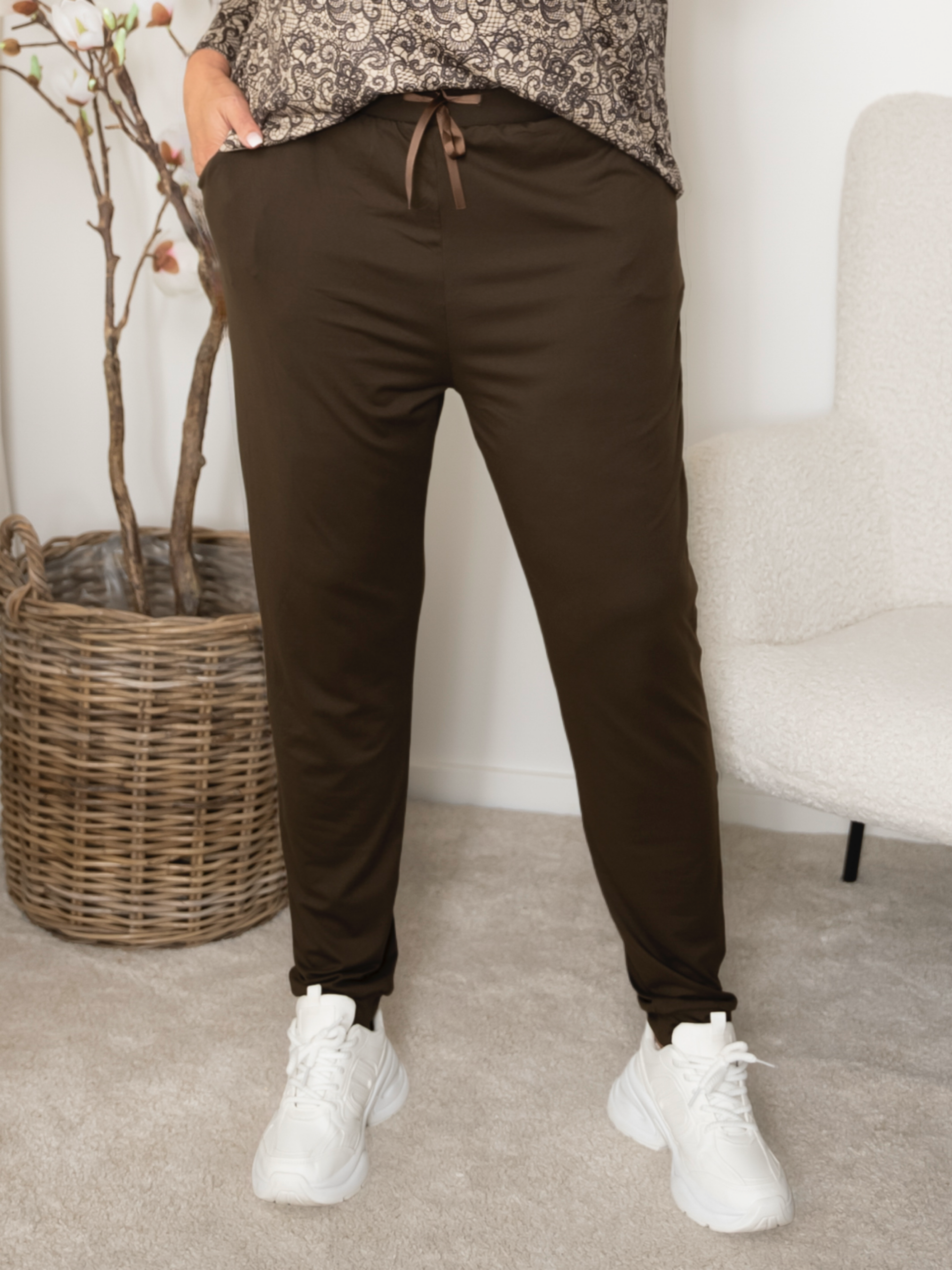 Tilføj et komfortabelt element til din garderobe med de skønne smørbløde bukser. Perfekte til kvinden, der elsker at udstråle både afslappet stil og charme, er disse bukser ideelle til både hverdag og hyggelige hjemmeaftener.