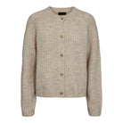 Cardiganen har rund hals, lange ærmer og en lige pasform med ribkanter, som giver en klassisk silhuet. De dekorative knapper foran i skinnende finish tilføjer et eksklusivt præg og gør modellen velegnet både til hverdagsbrug og pænere lejligheder.