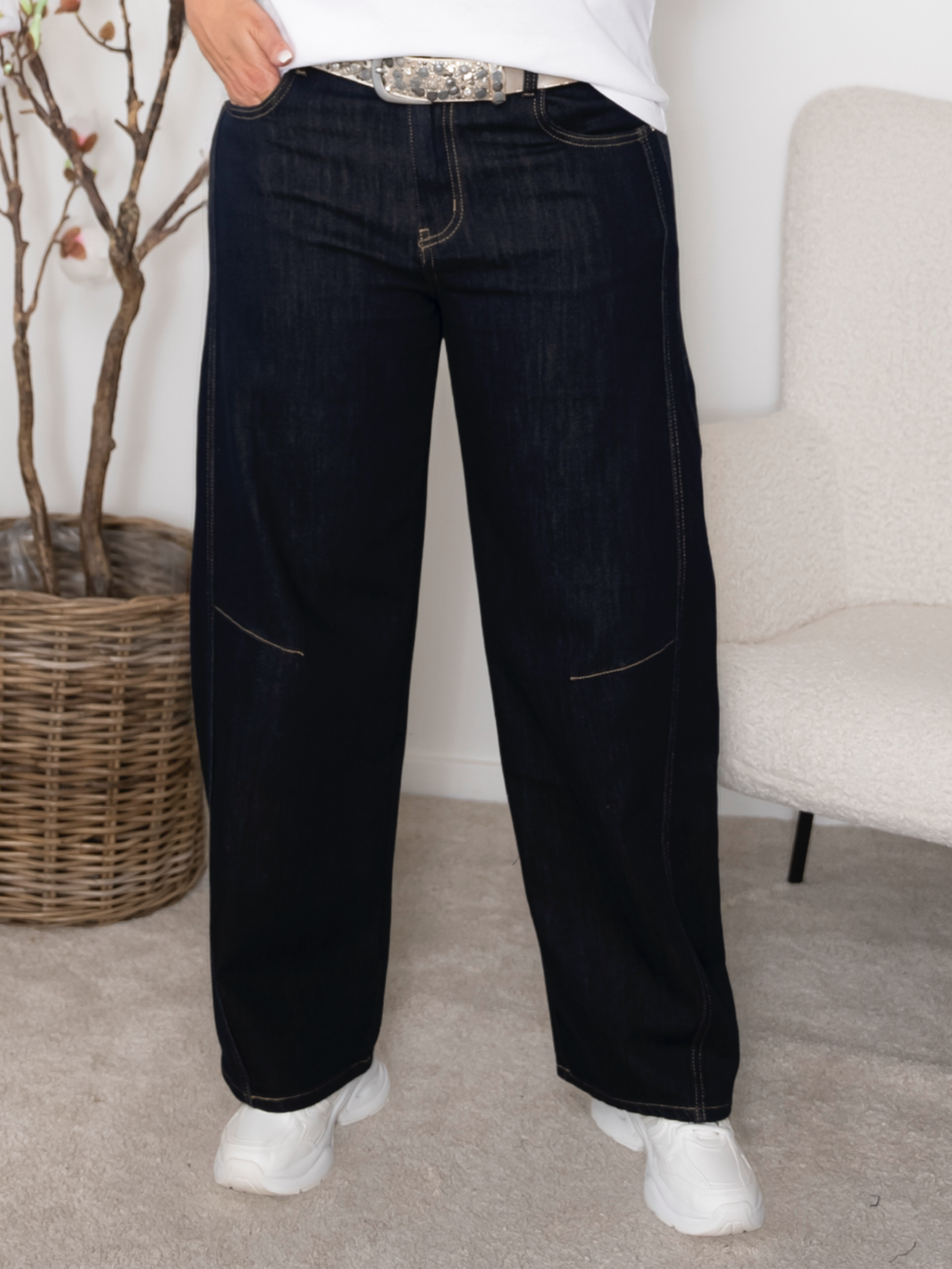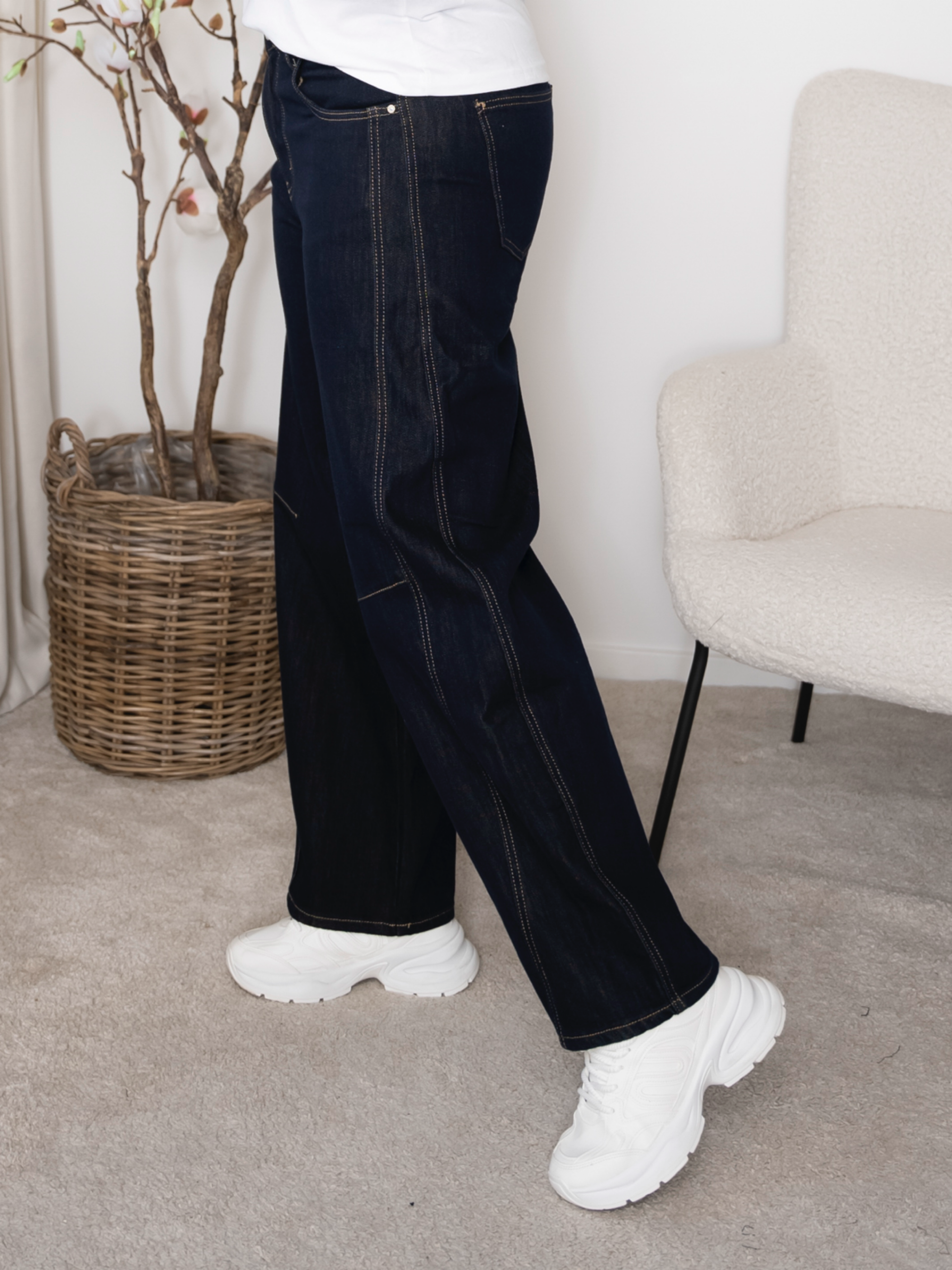 Jeansene har klassisk knap- og lynlåslukning samt bæltestropper i taljen, så de nemt kan styles med dine yndlingsbælter. Den mørke vask og de tydelige stikninger fremhæver snittet og giver ekstra visuel interesse.