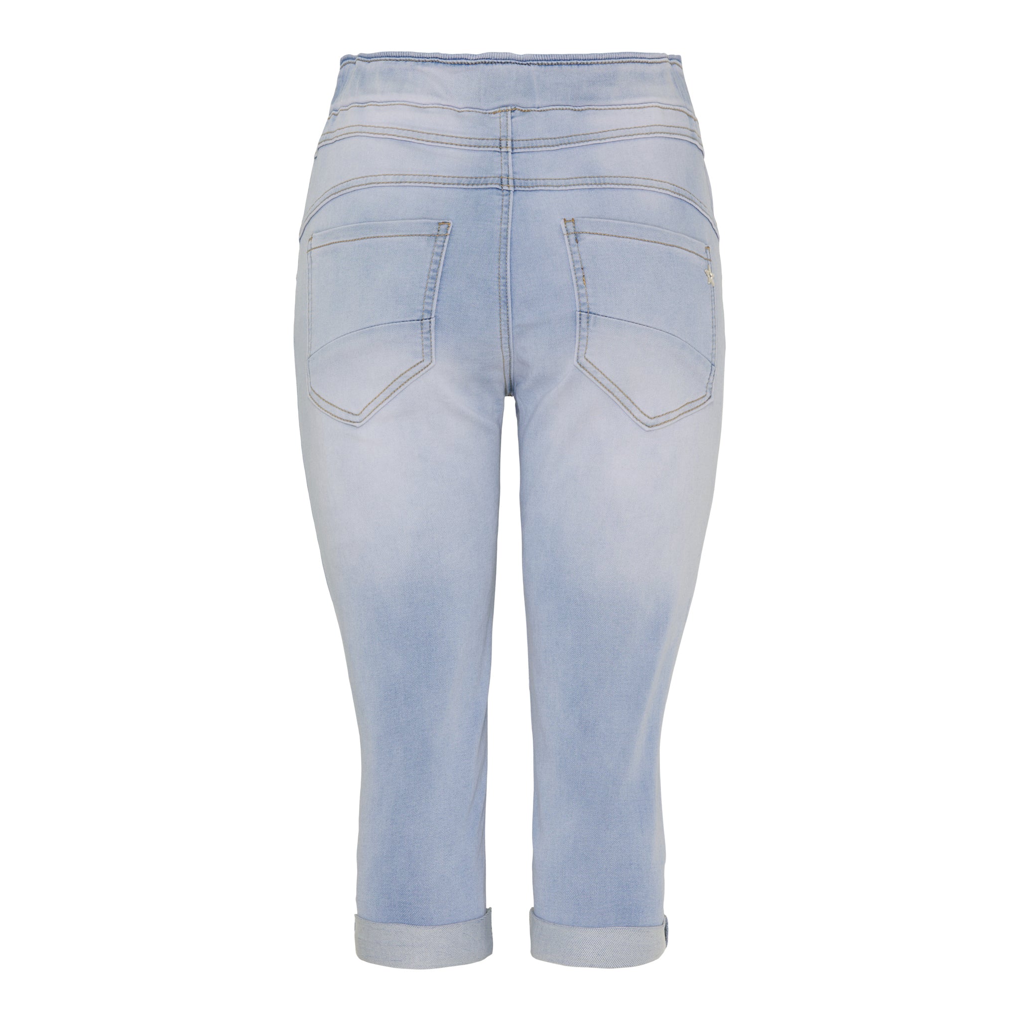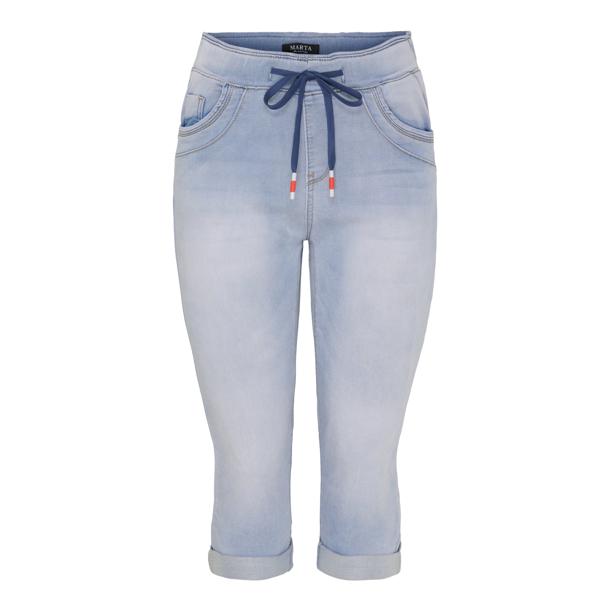 Disse skønne capribukser forener komfort og stil på bedste vis. Det bløde denimlook kombineret med den elastiske talje og justerbare snøre gør dem til et perfekt valg til både hverdagsbrug og feriestemning.
