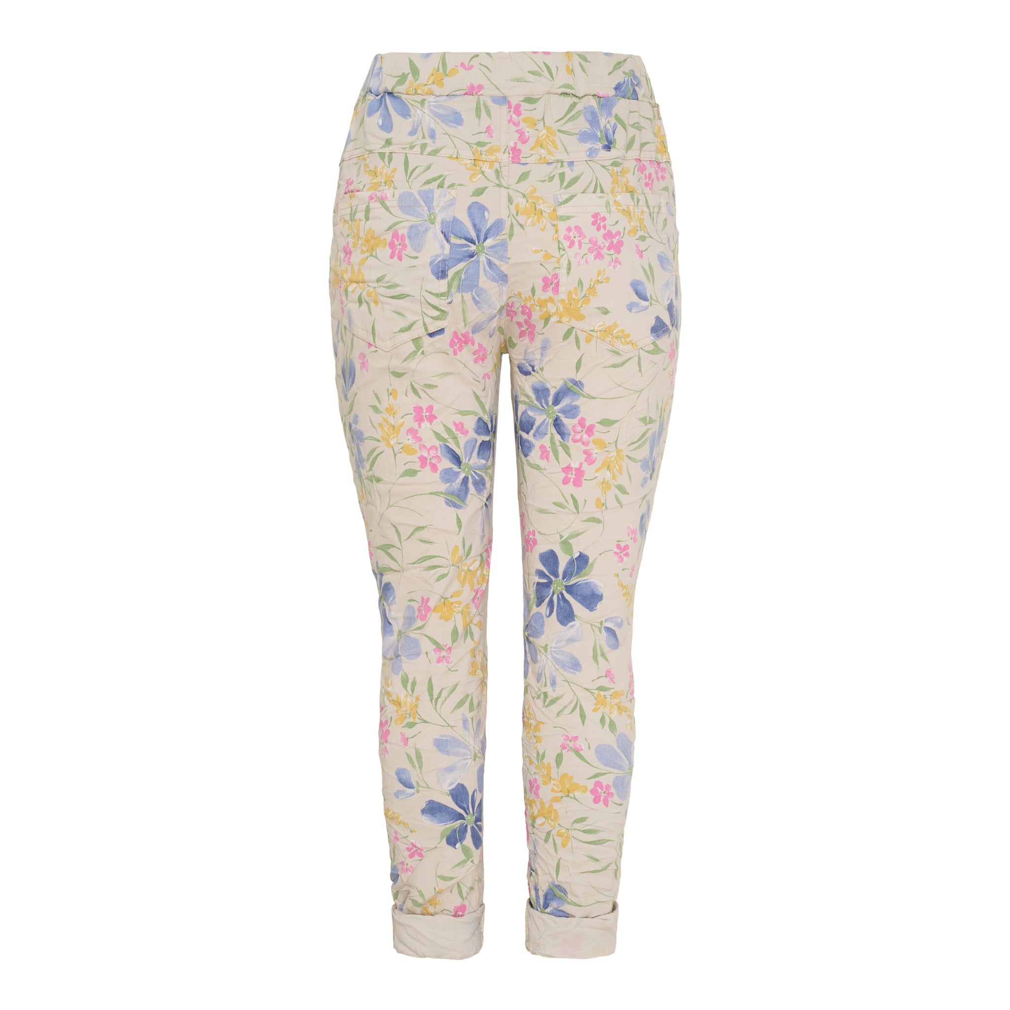 Disse bukser kombinerer feminin elegance med afslappet komfort. Det smukke blomsterprint tilføjer et romantisk touch, mens den bløde kvalitet og elastiske talje med bindebånd sikrer en perfekt pasform hele dagen.