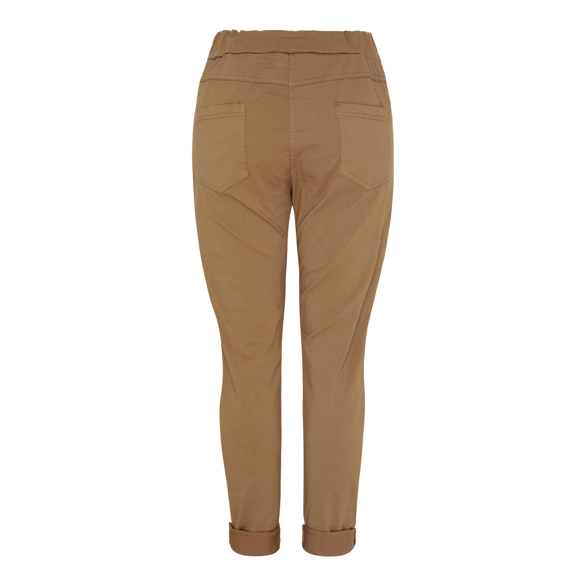 Disse alsidige bukser er både stilrene og komfortable – ideelle til dig, der ønsker et afslappet look med et moderne twist. Det bløde stretchy materiale kombineret med elastisk talje og bindebånd gør dem super behagelige at have på, mens den smalle pasform og opsmøg ved anklerne giver et smart og tidssvarende udtryk.