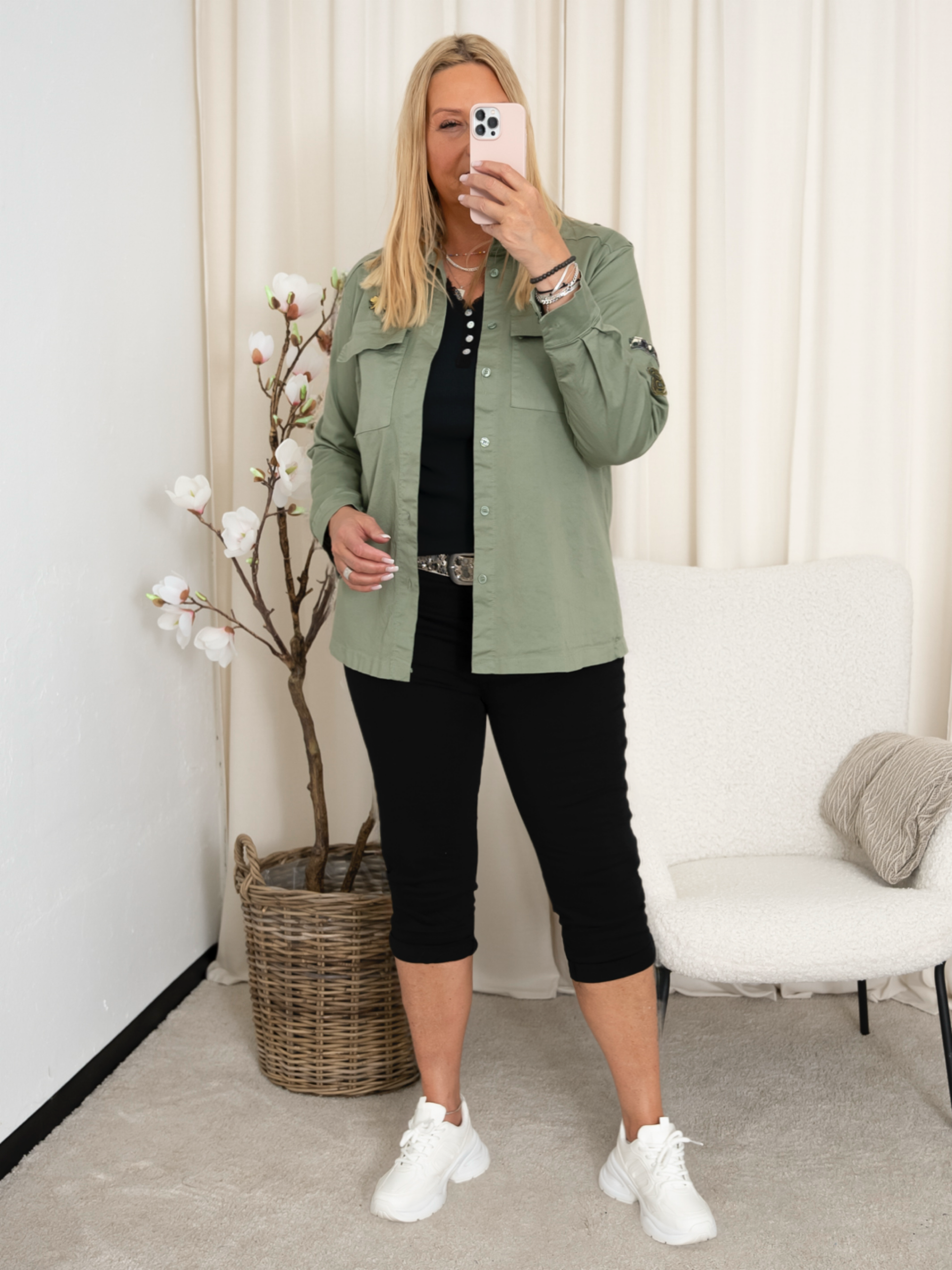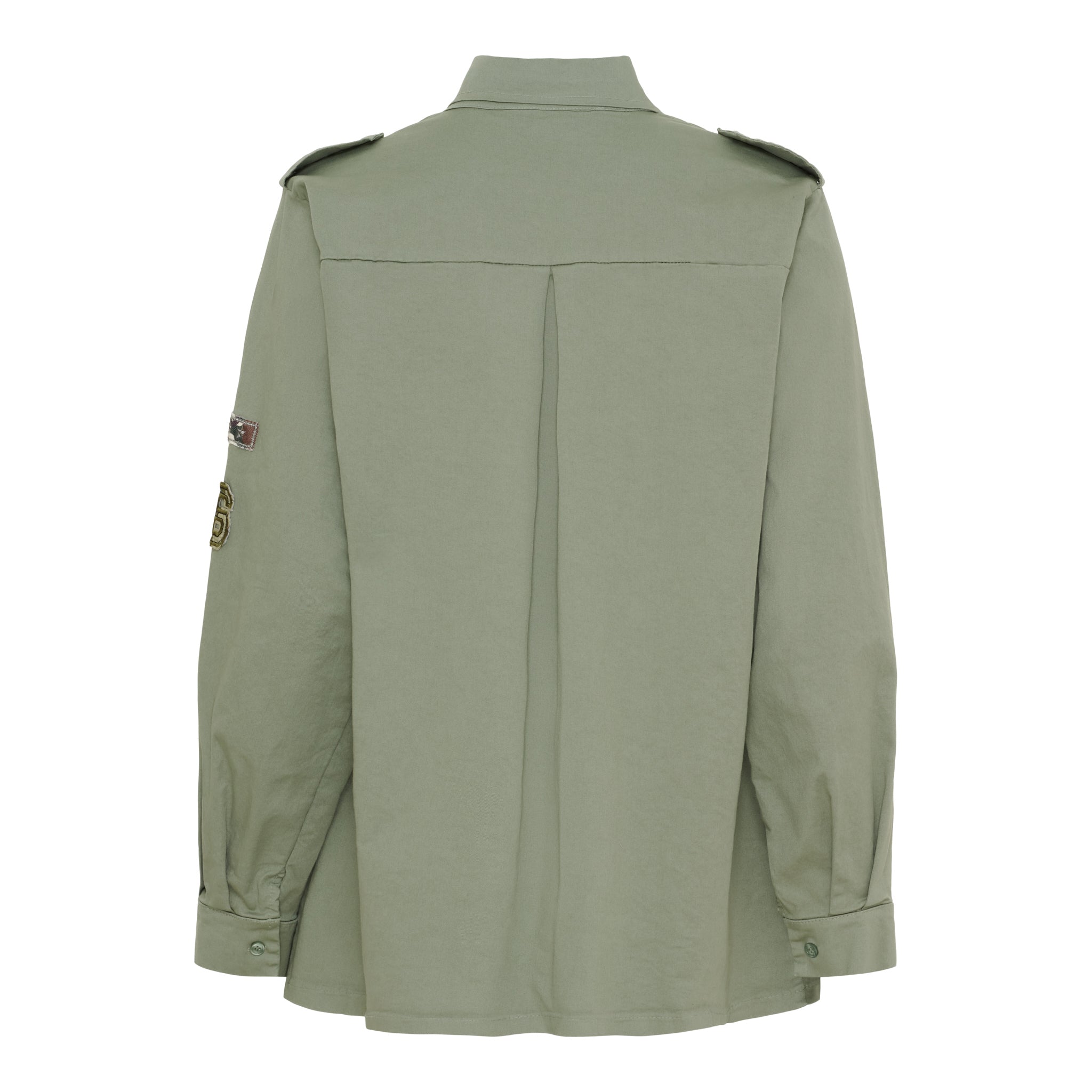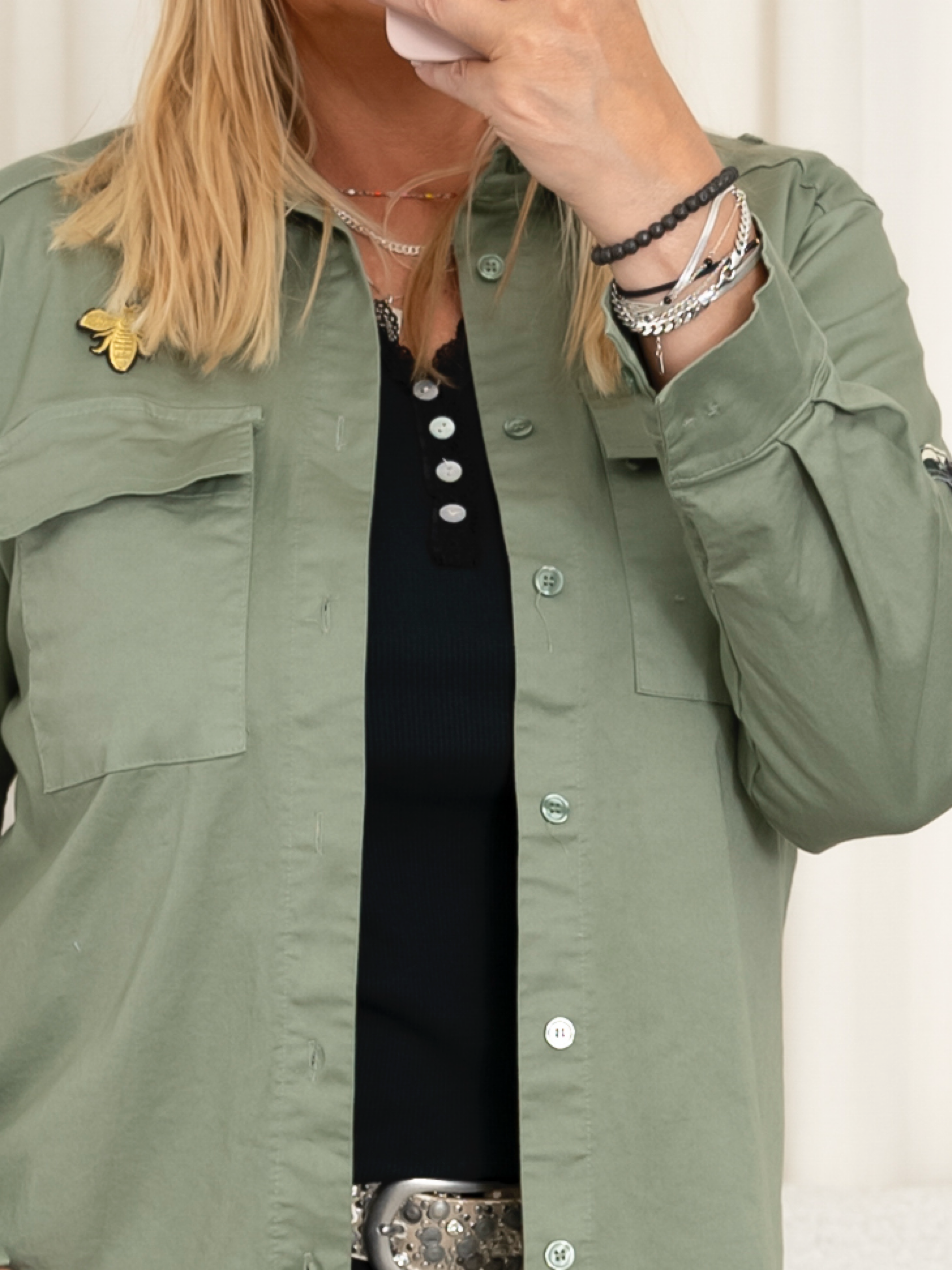 Denne rå og trendy jakke er til dig, der elsker at skille dig ud med kant og karakter. Med sine militærinspirerede detaljer, patches og markante brystlommer er skjorten både praktisk og stilfuld – perfekt til et edgy casual look.