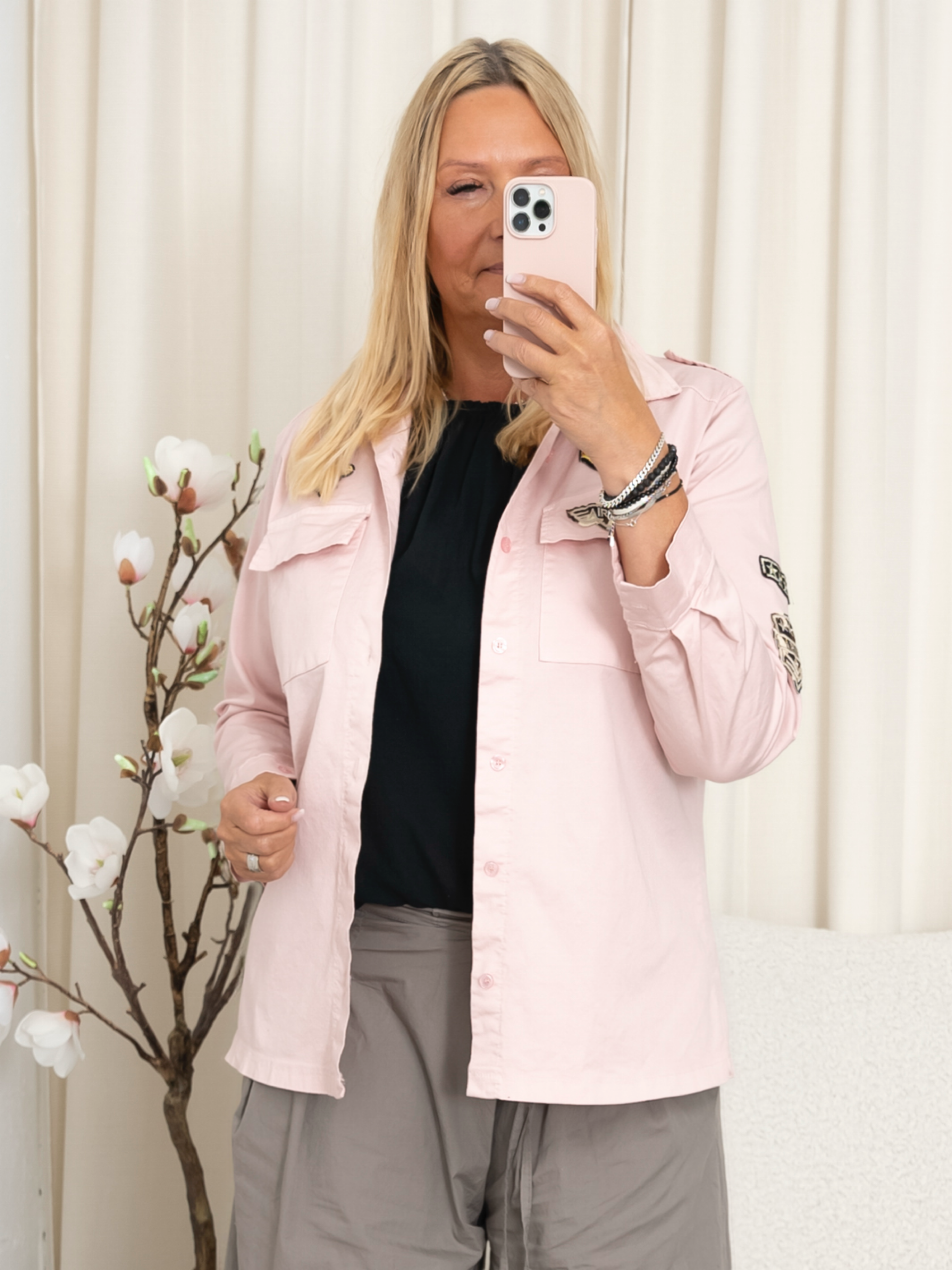 Denne rå og trendy jakke er til dig, der elsker at skille dig ud med kant og karakter. Med sine militærinspirerede detaljer, patches og markante brystlommer er skjorten både praktisk og stilfuld – perfekt til et edgy casual look.