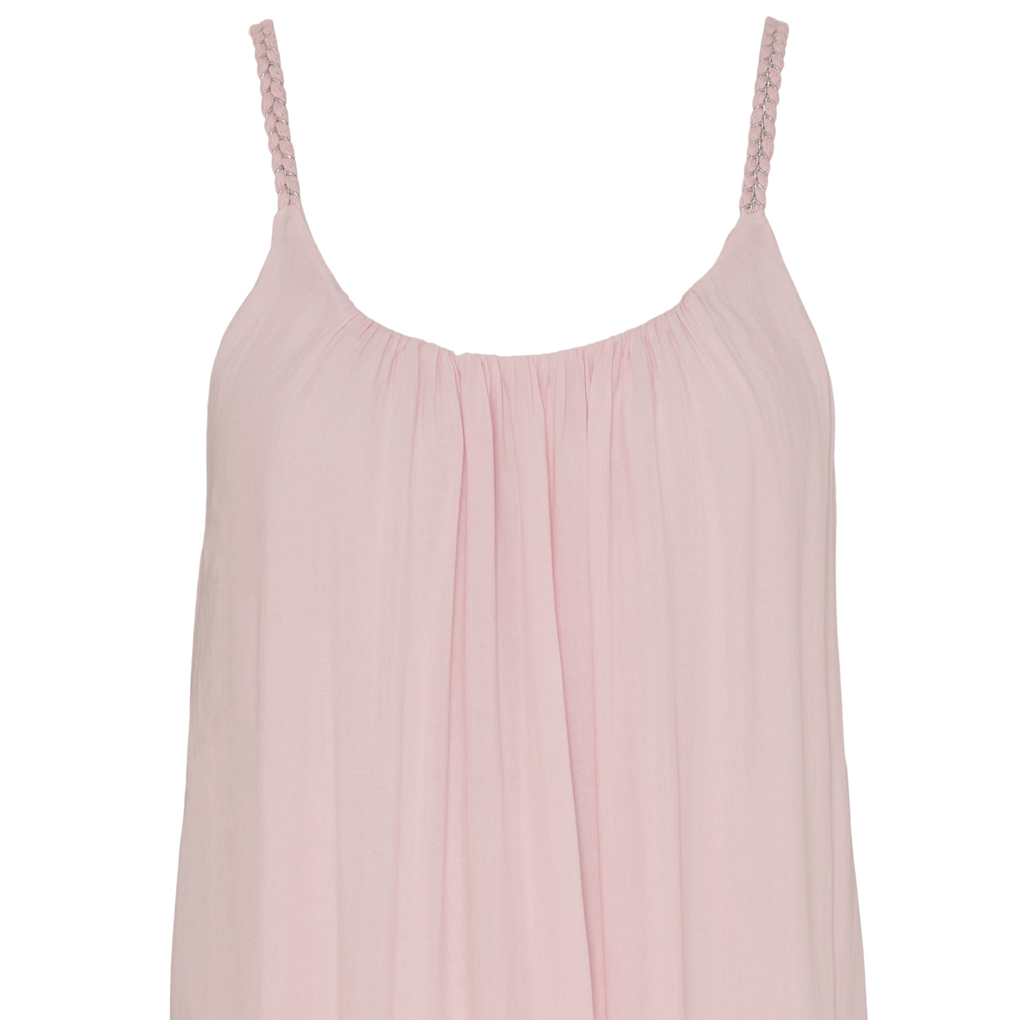 Denne kjole er indbegrebet af sommerens lethed. Den løse og luftige pasform falder smukt om kroppen og giver en ubesværet elegant silhuet. Med sine fine, flettede stropper tilføres et unikt touch, som gør den enkel, men alligevel helt særlig.