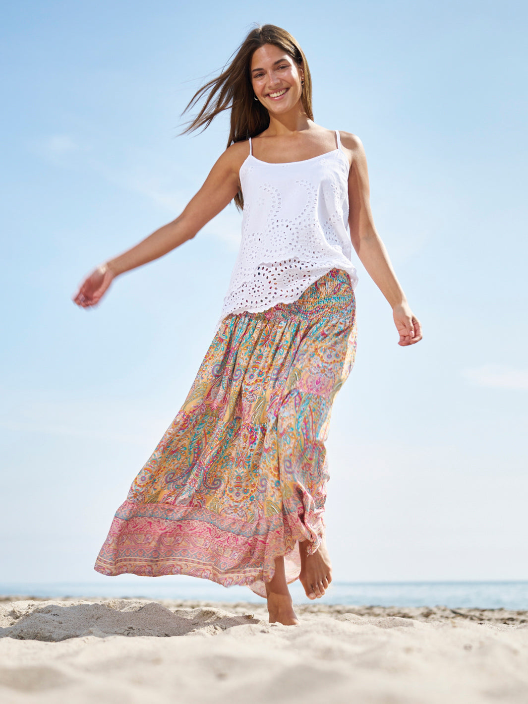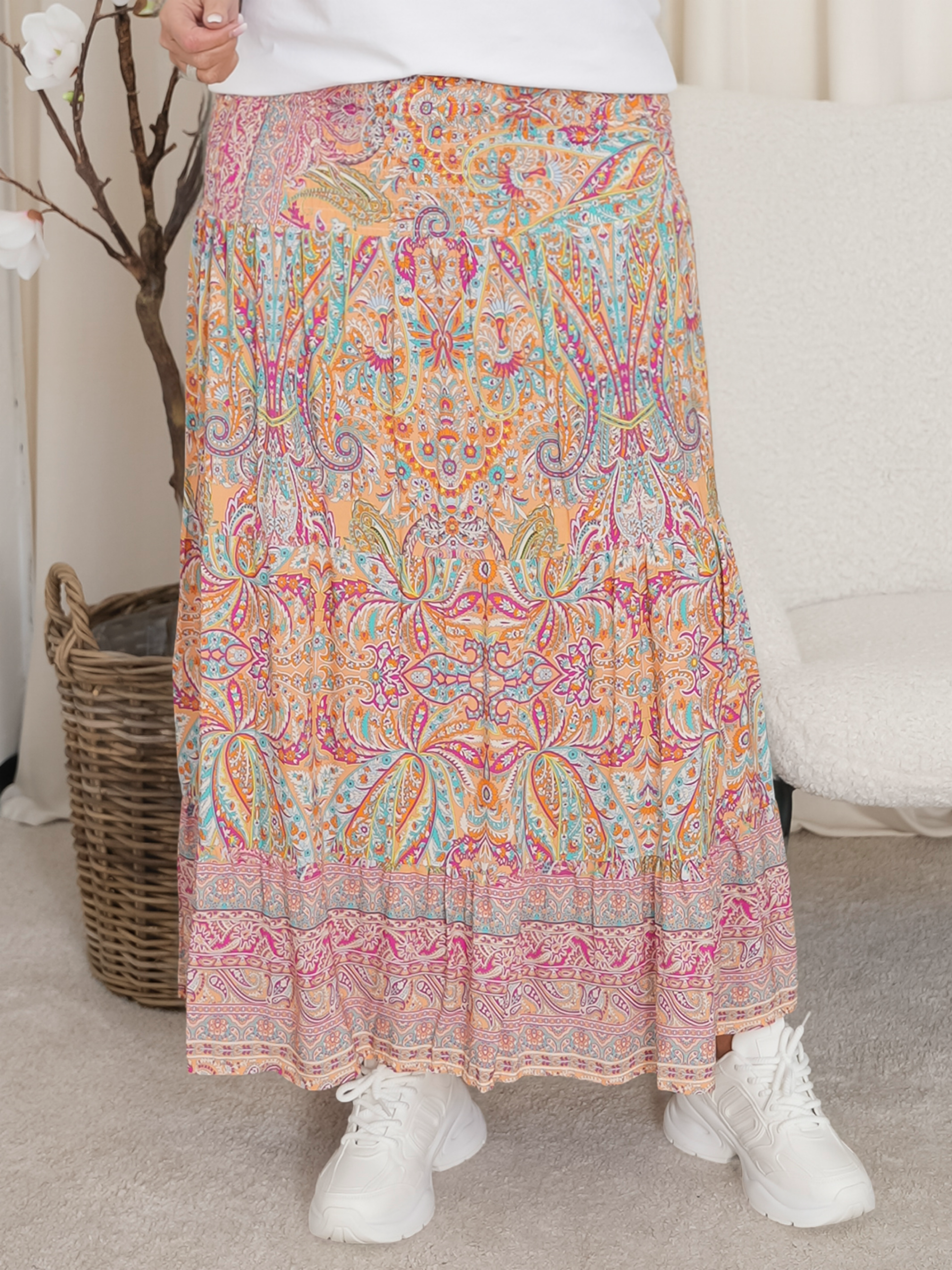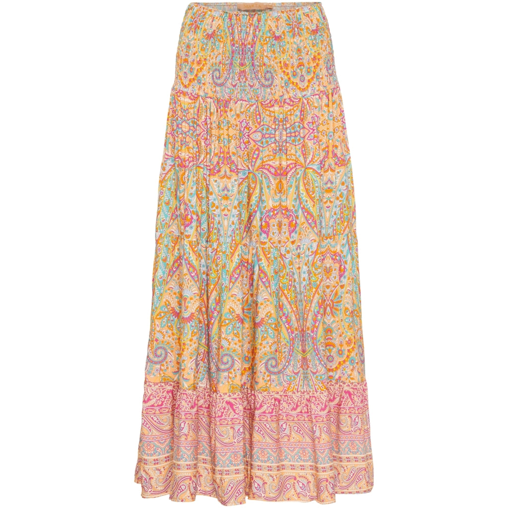Oplev en farverig og bohemeinspireret stil med denne smukke, mønstrede nederdel. Denne lange nederdel er designet til at give dig et levende og feminint look, perfekt til både hverdag og festlige lejligheder. Fremstillet af let og luftig viskose, sikrer den maksimal komfort og bevægelsesfrihed hele dagen.
