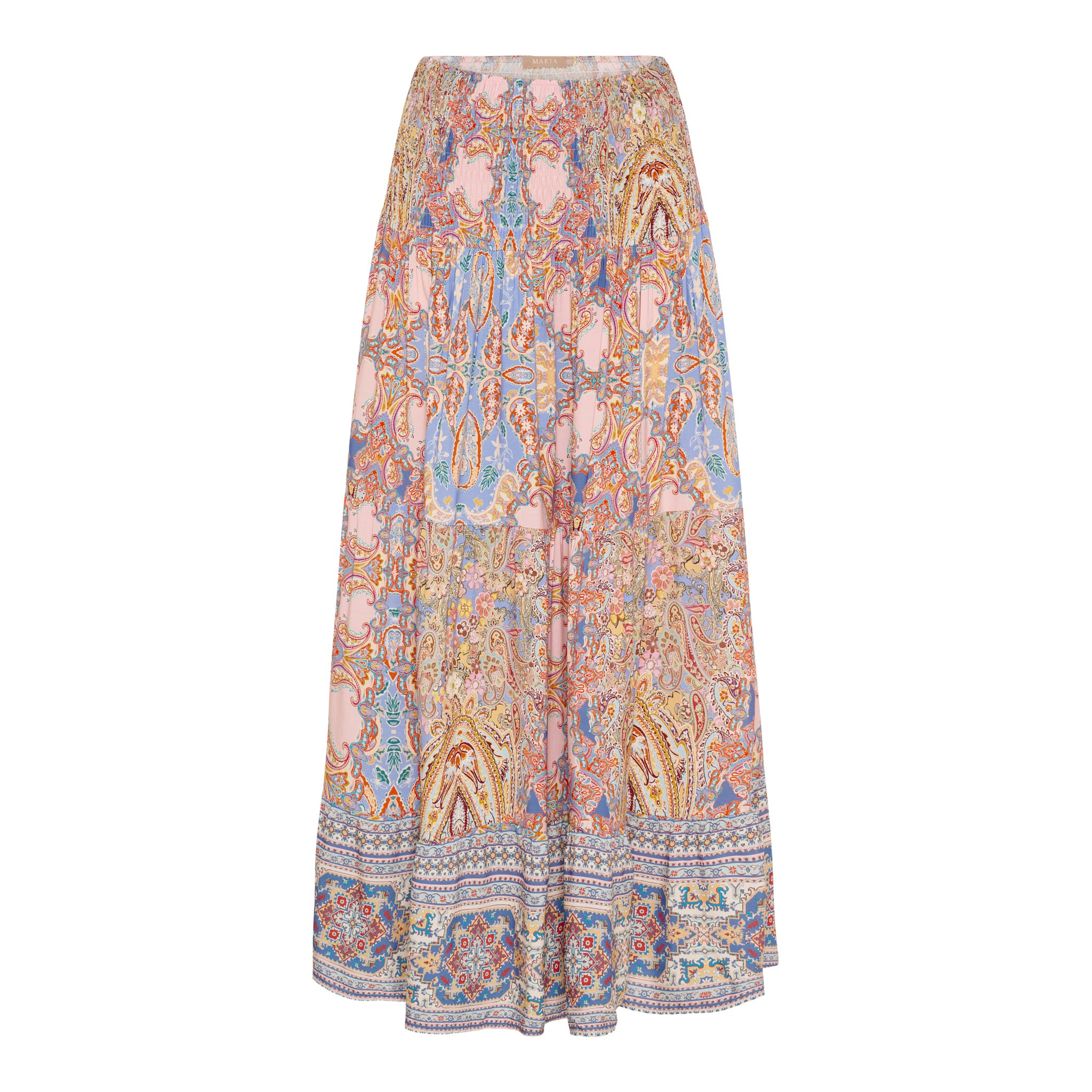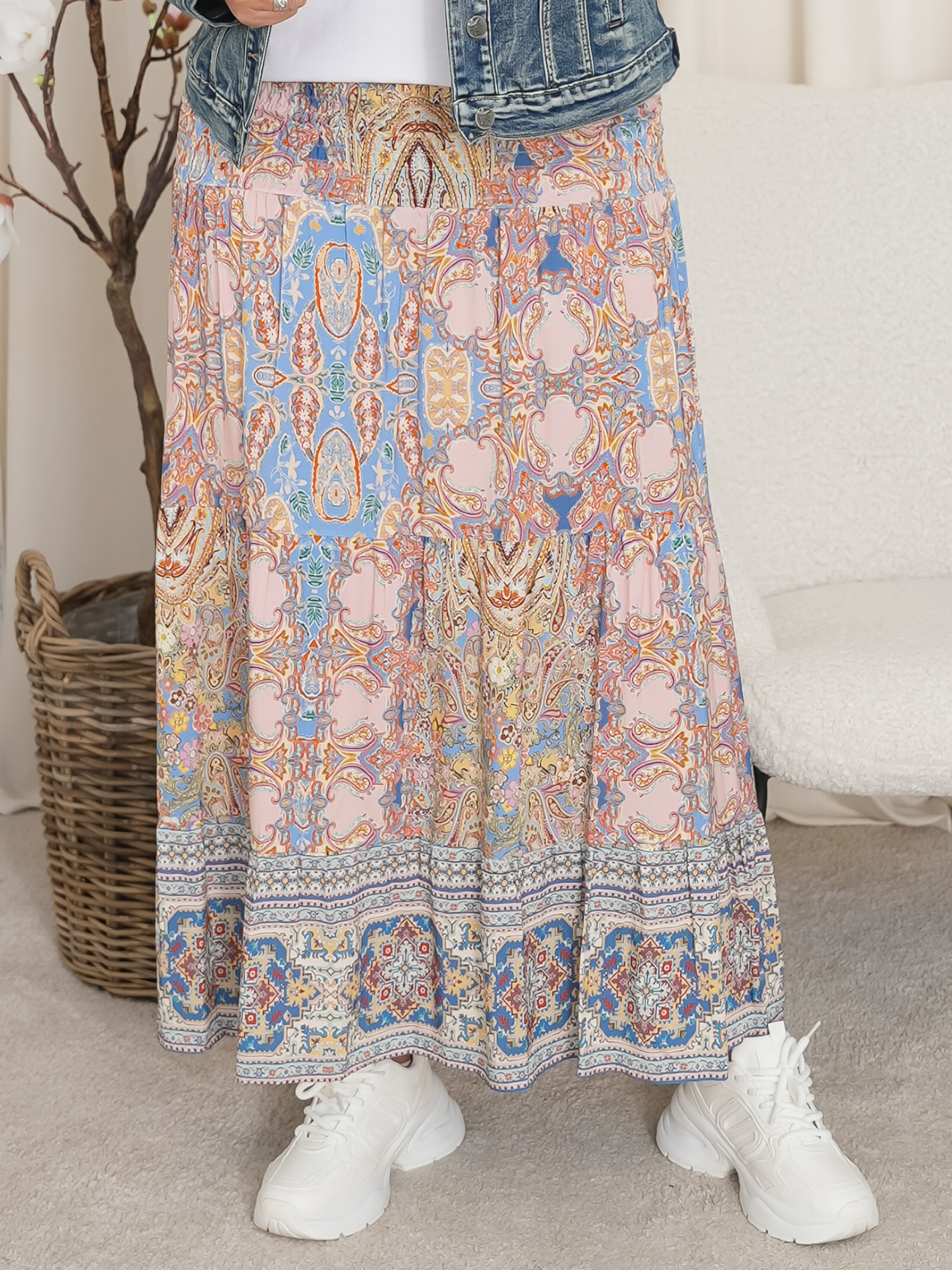Oplev en farverig og bohemeinspireret stil med denne smukke, mønstrede nederdel. Denne lange nederdel er designet til at give dig et levende og feminint look, perfekt til både hverdag og festlige lejligheder. Fremstillet af let og luftig viskose, sikrer den maksimal komfort og bevægelsesfrihed hele dagen.