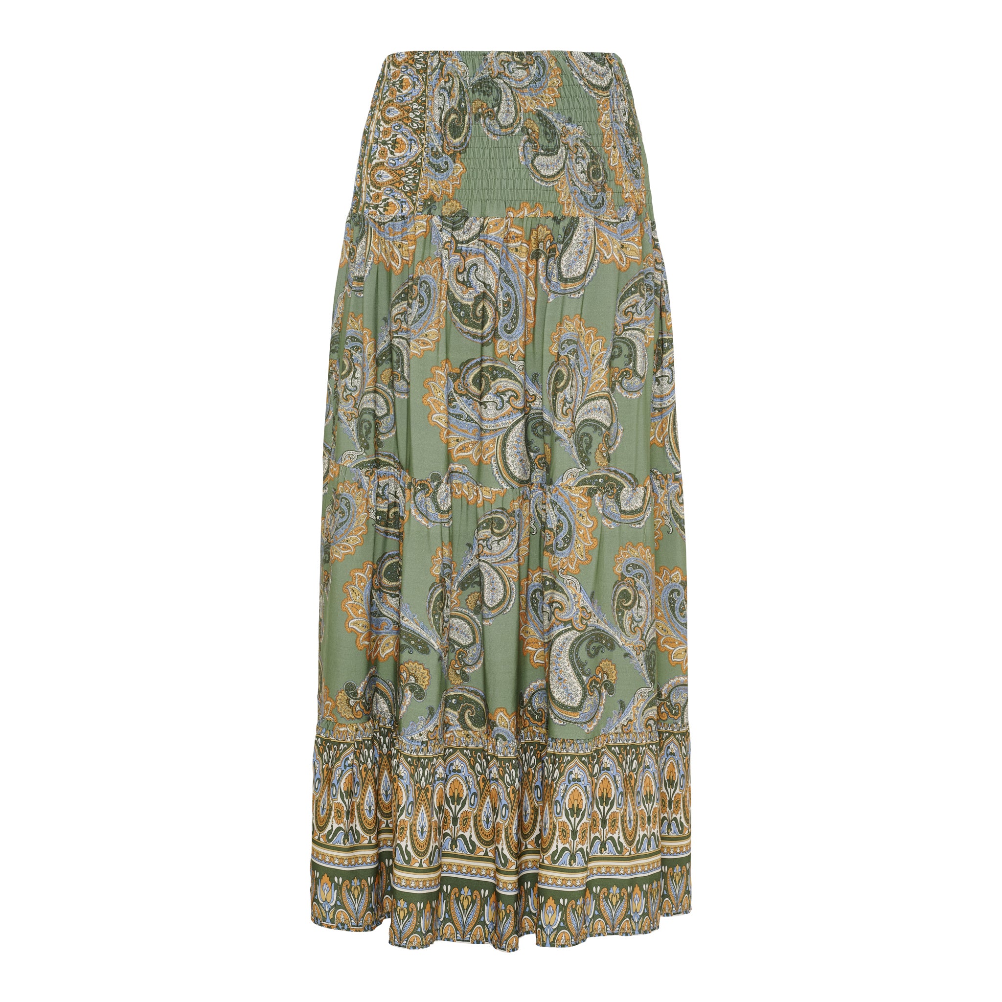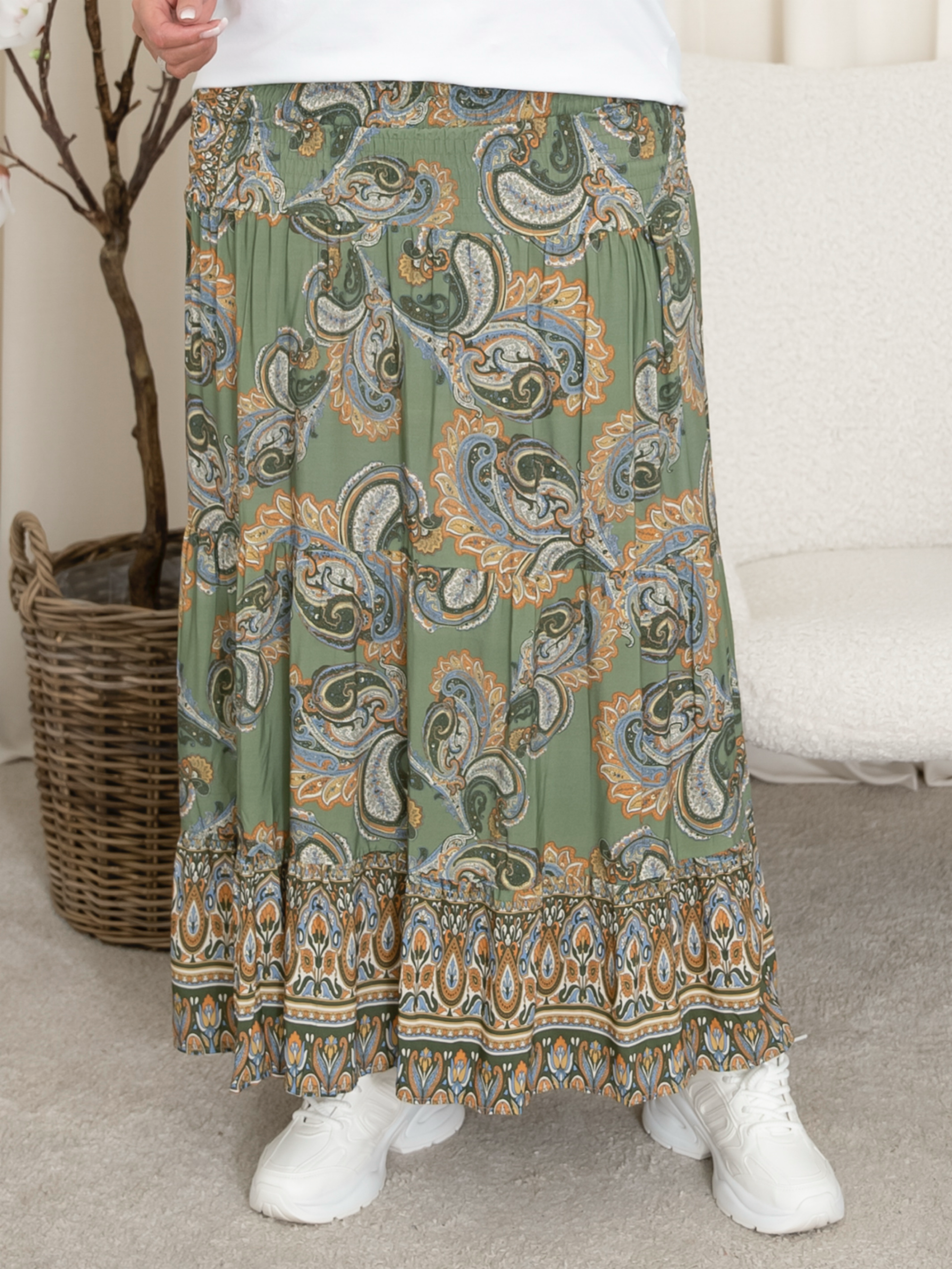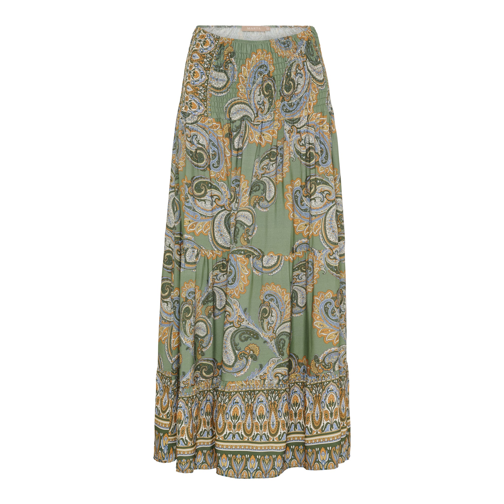 Oplev en farverig og bohemeinspireret stil med denne smukke, mønstrede nederdel. Denne lange nederdel er designet til at give dig et levende og feminint look, perfekt til både hverdag og festlige lejligheder. Fremstillet af let og luftig viskose, sikrer den maksimal komfort og bevægelsesfrihed hele dagen.