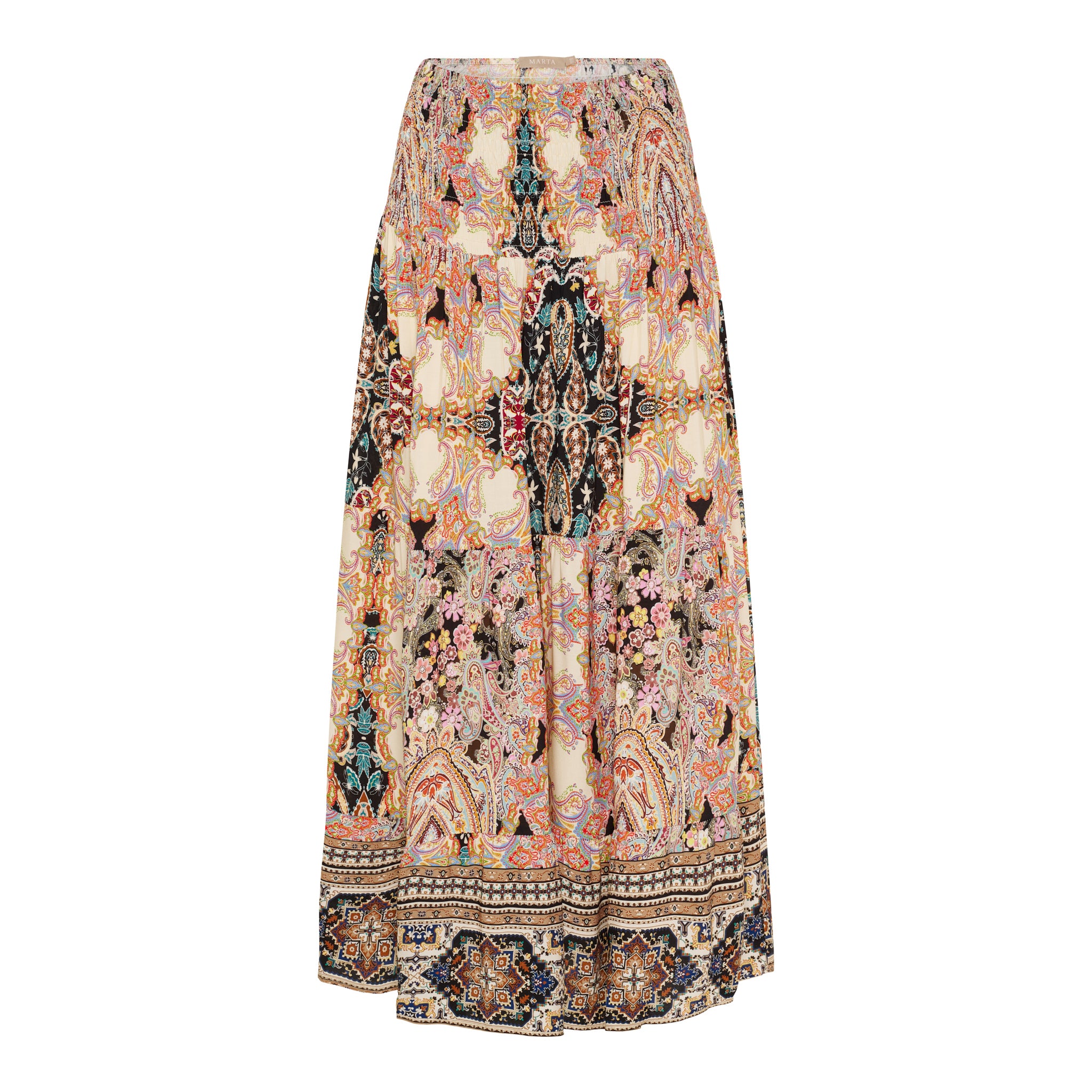 Oplev en farverig og bohemeinspireret stil med denne smukke, mønstrede nederdel. Denne lange nederdel er designet til at give dig et levende og feminint look, perfekt til både hverdag og festlige lejligheder. Fremstillet af let og luftig viskose, sikrer den maksimal komfort og bevægelsesfrihed hele dagen.