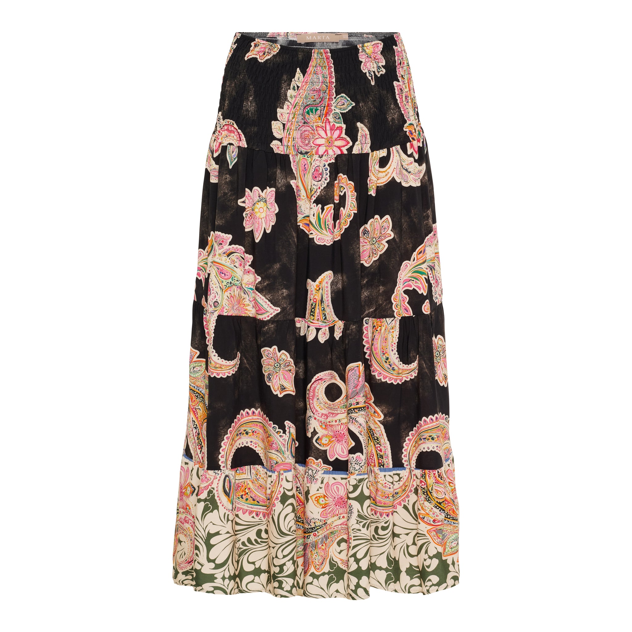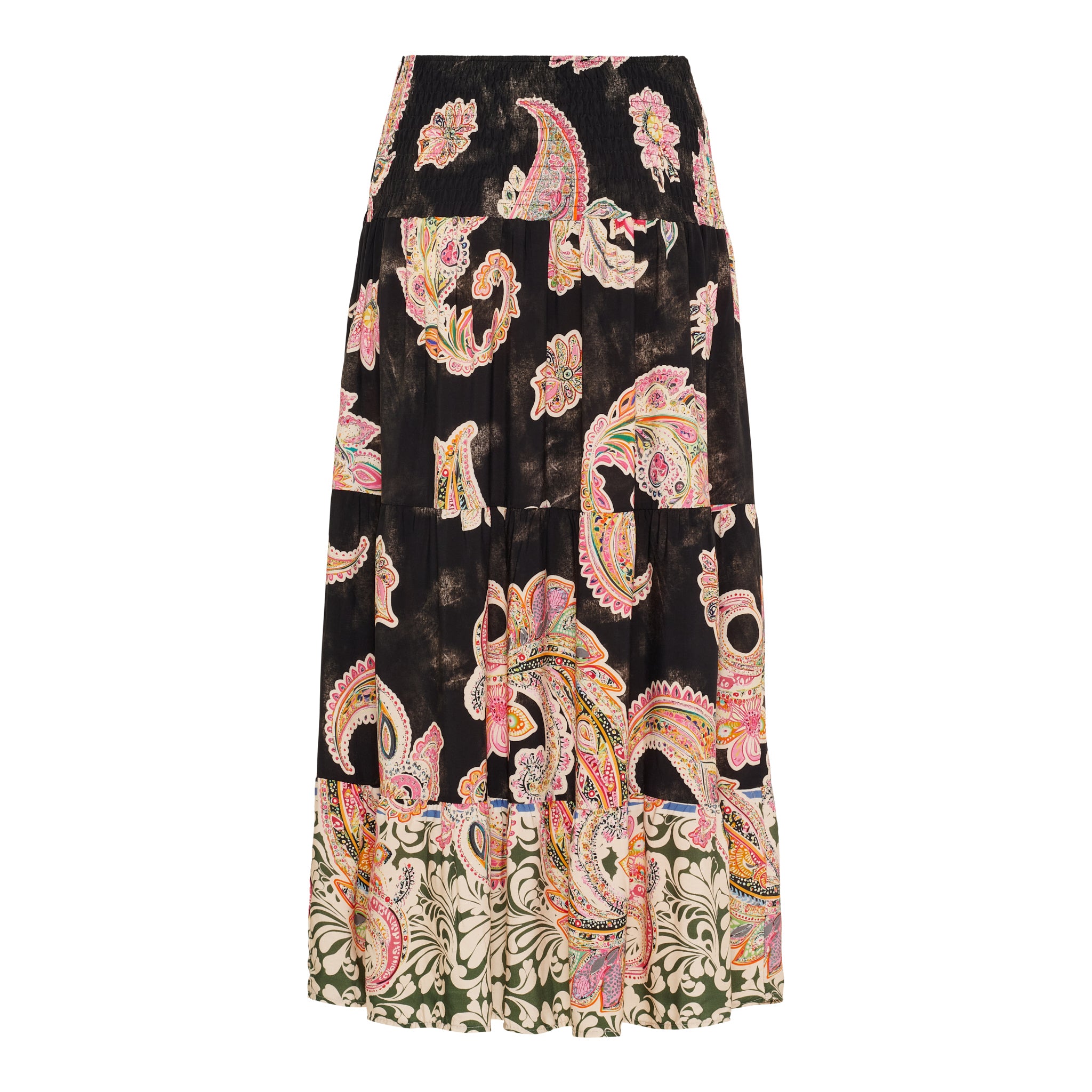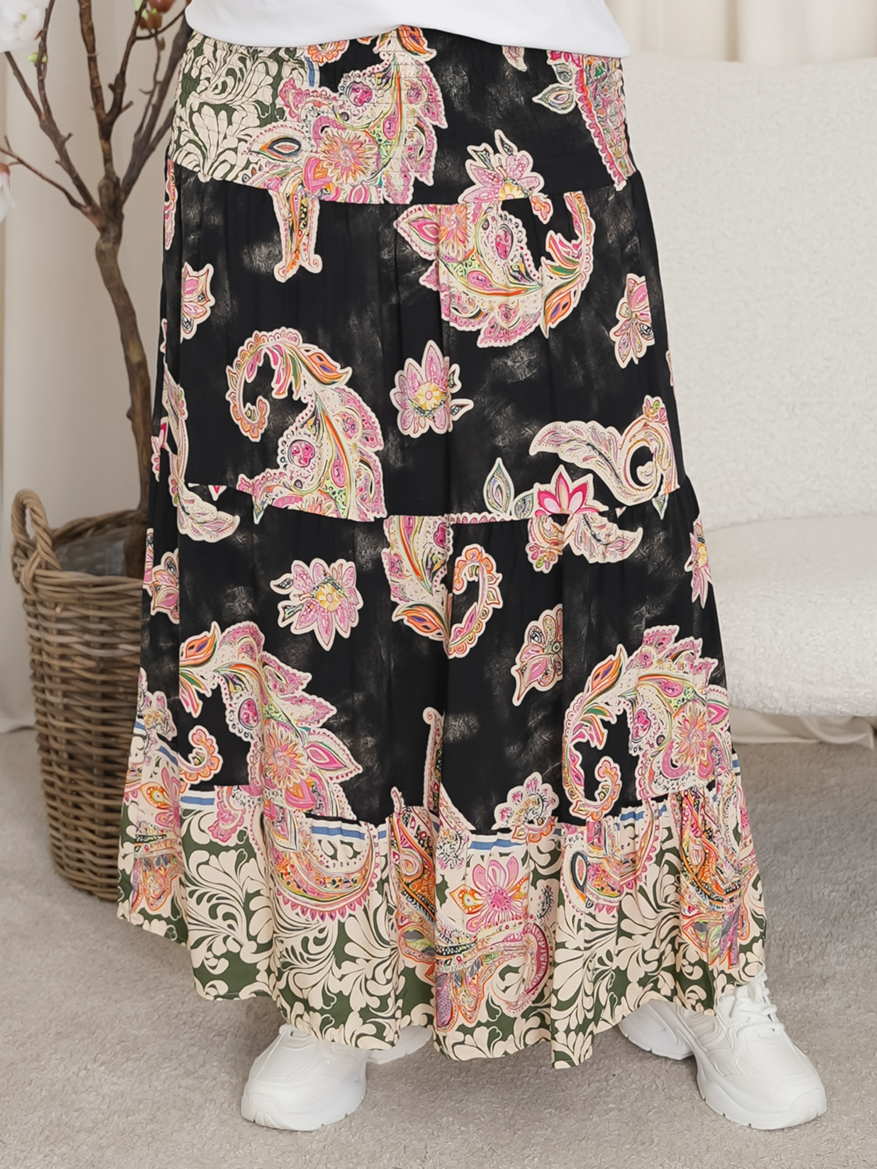 Oplev en farverig og bohemeinspireret stil med denne smukke, mønstrede nederdel. Denne lange nederdel er designet til at give dig et levende og feminint look, perfekt til både hverdag og festlige lejligheder. Fremstillet af let og luftig viskose, sikrer den maksimal komfort og bevægelsesfrihed hele dagen.