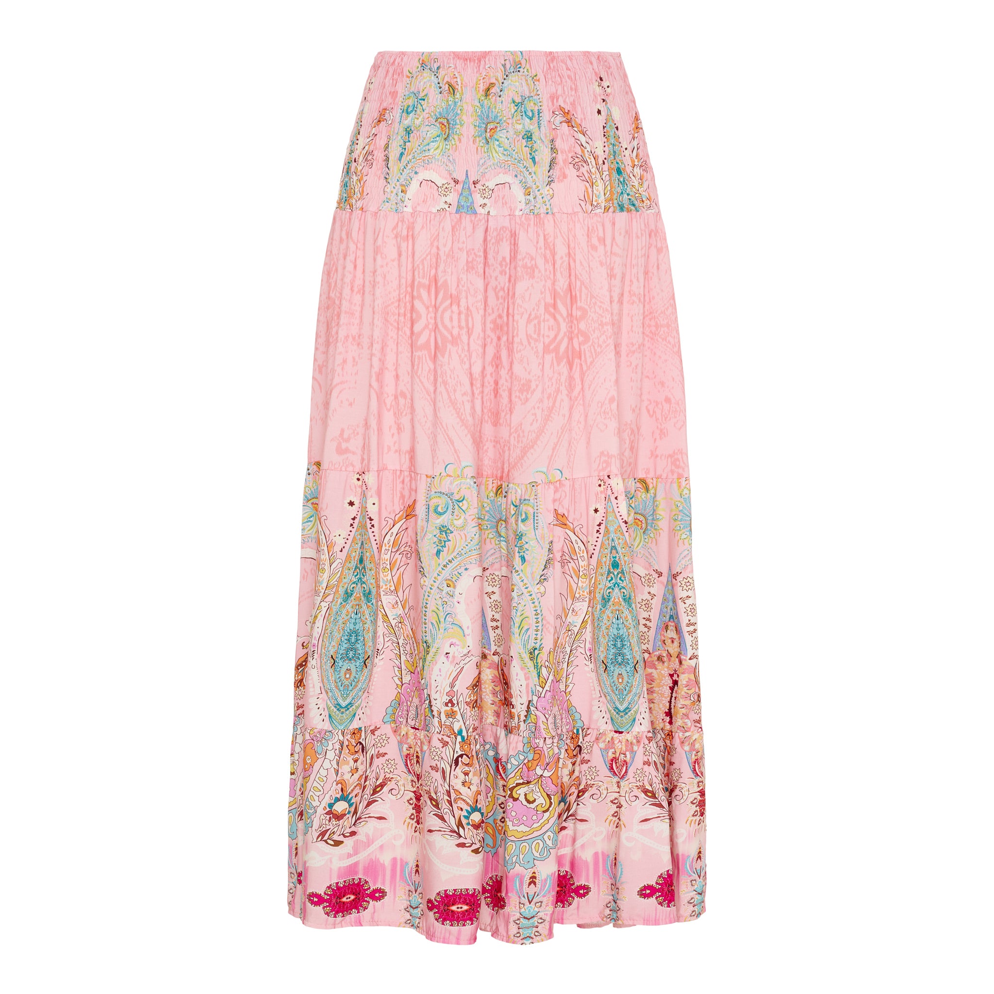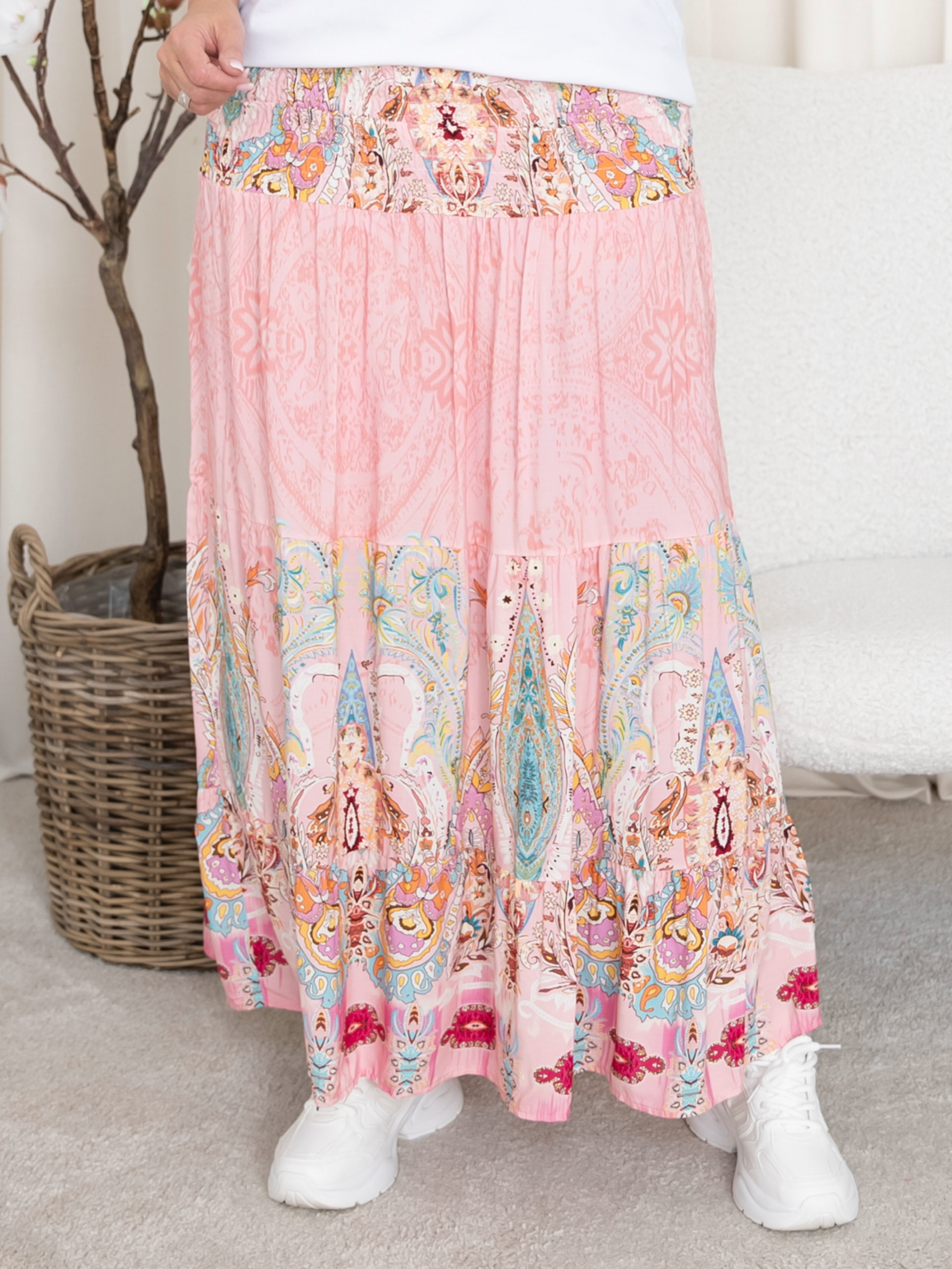Oplev en farverig og bohemeinspireret stil med denne smukke, mønstrede nederdel. Denne lange nederdel er designet til at give dig et levende og feminint look, perfekt til både hverdag og festlige lejligheder. Fremstillet af let og luftig viskose, sikrer den maksimal komfort og bevægelsesfrihed hele dagen.