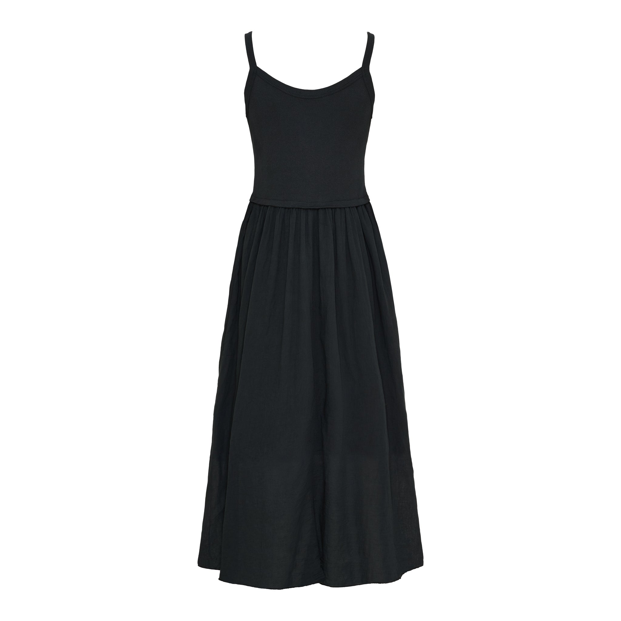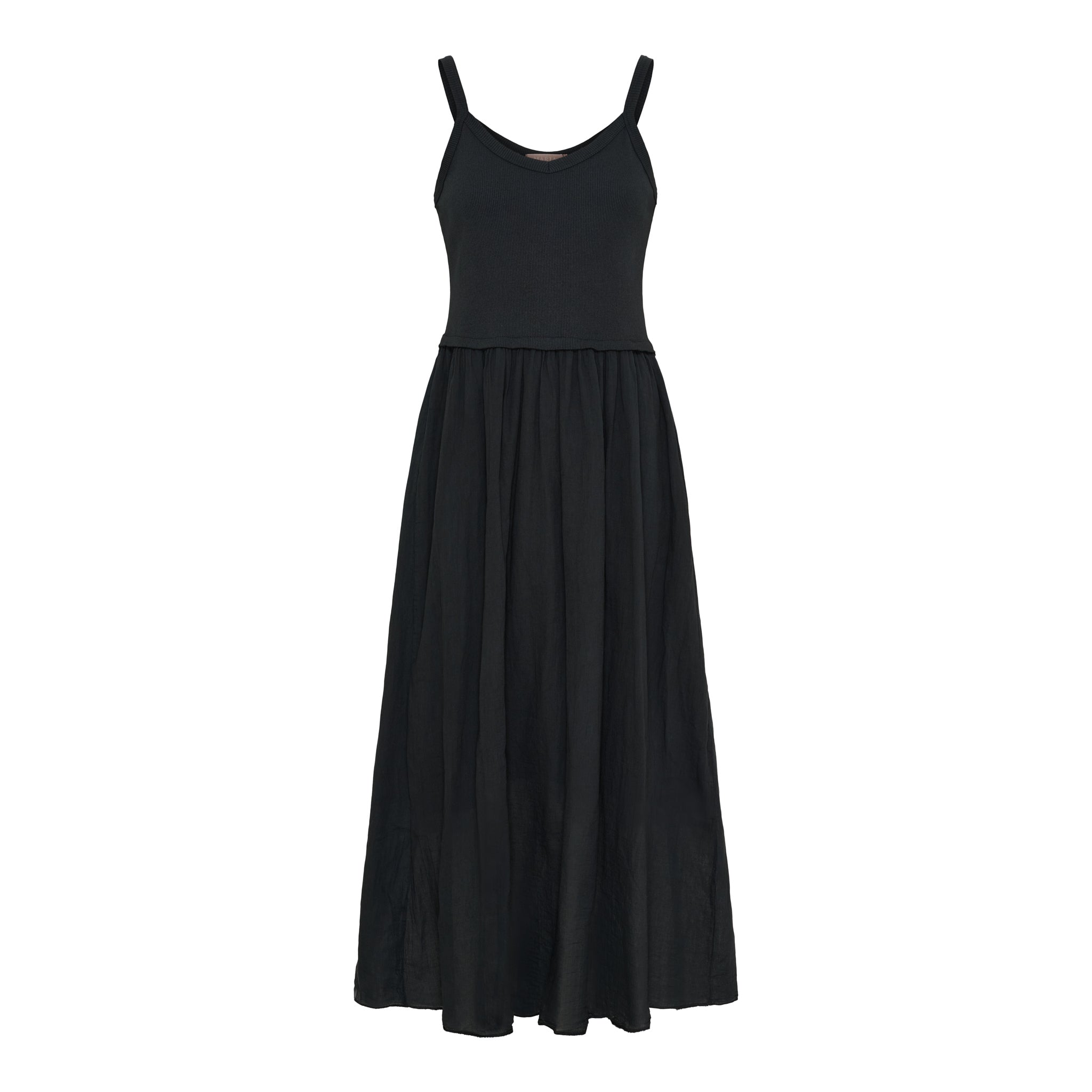 Denne kjole er indbegrebet af afslappet elegance. Med en tætsiddende ribtop og et let, flagrende skørt skaber den et feminint og flatterende look, der både kan dresses op og ned – alt efter anledning.