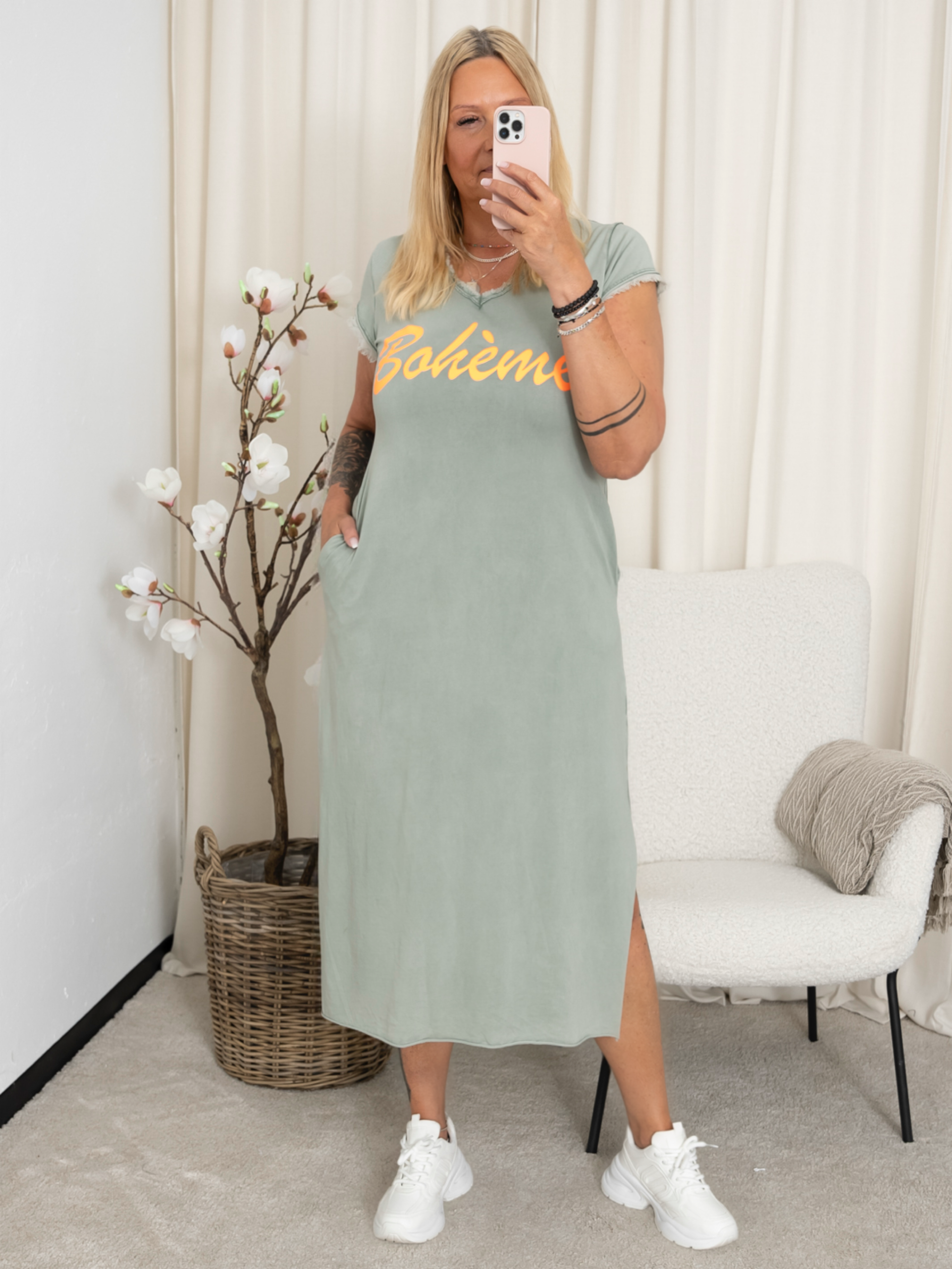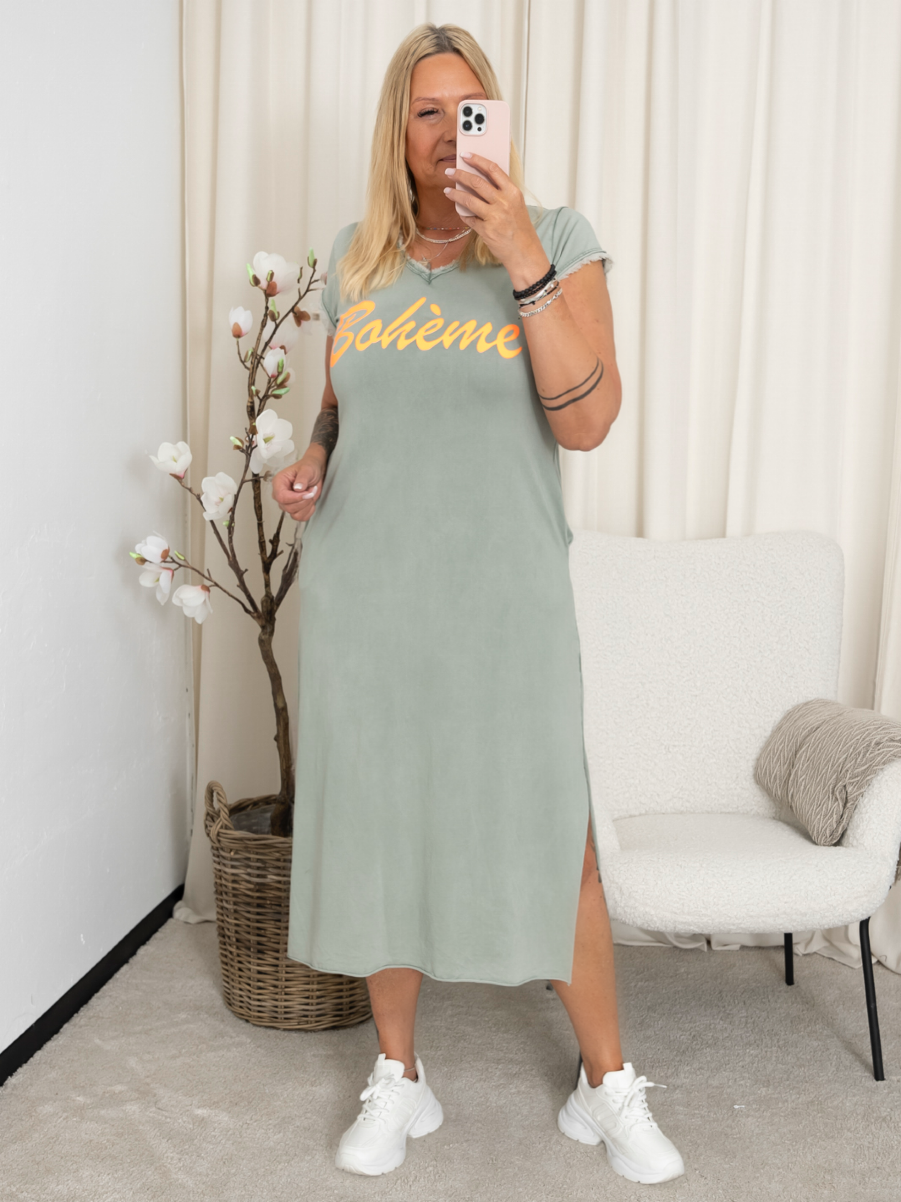 Casual og cool – denne maxikjole er det perfekte mix af afslappet komfort og trendy statement. Lavet i en blød bomuldskvalitet med vasket look, der giver et lækkert, vintage-inspireret udtryk. På brystet prydes den af et iøjnefaldende print, som giver kant til det enkle snit.