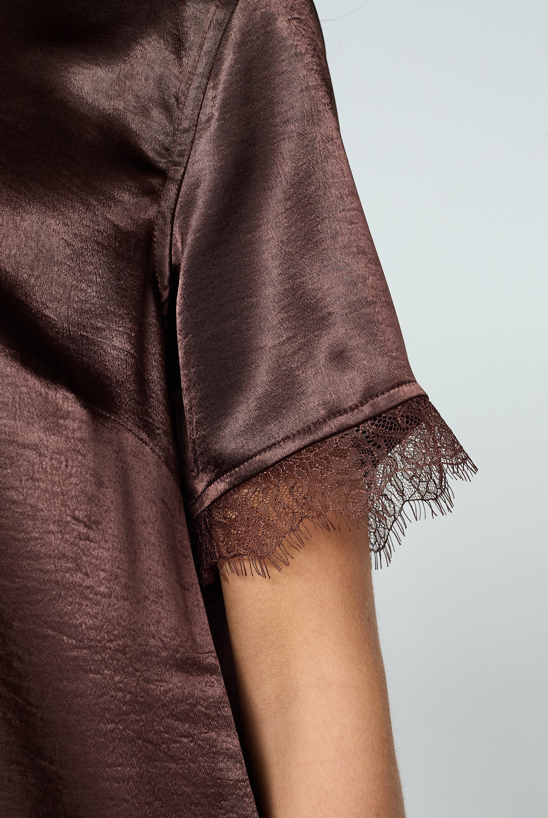 Blusen er fremstillet af et blødt og let strik materiale, der føles behageligt mod huden og giver en skøn komfort hele dagen. Den har en rund halsudskæring og korte ærmer, hvilket gør den nem at style til forskellige lejligheder. Det minimalistiske design gør blusen alsidig og let at kombinere med både jeans og nederdele, hvilket gør den til en uundværlig del af din garderobe.