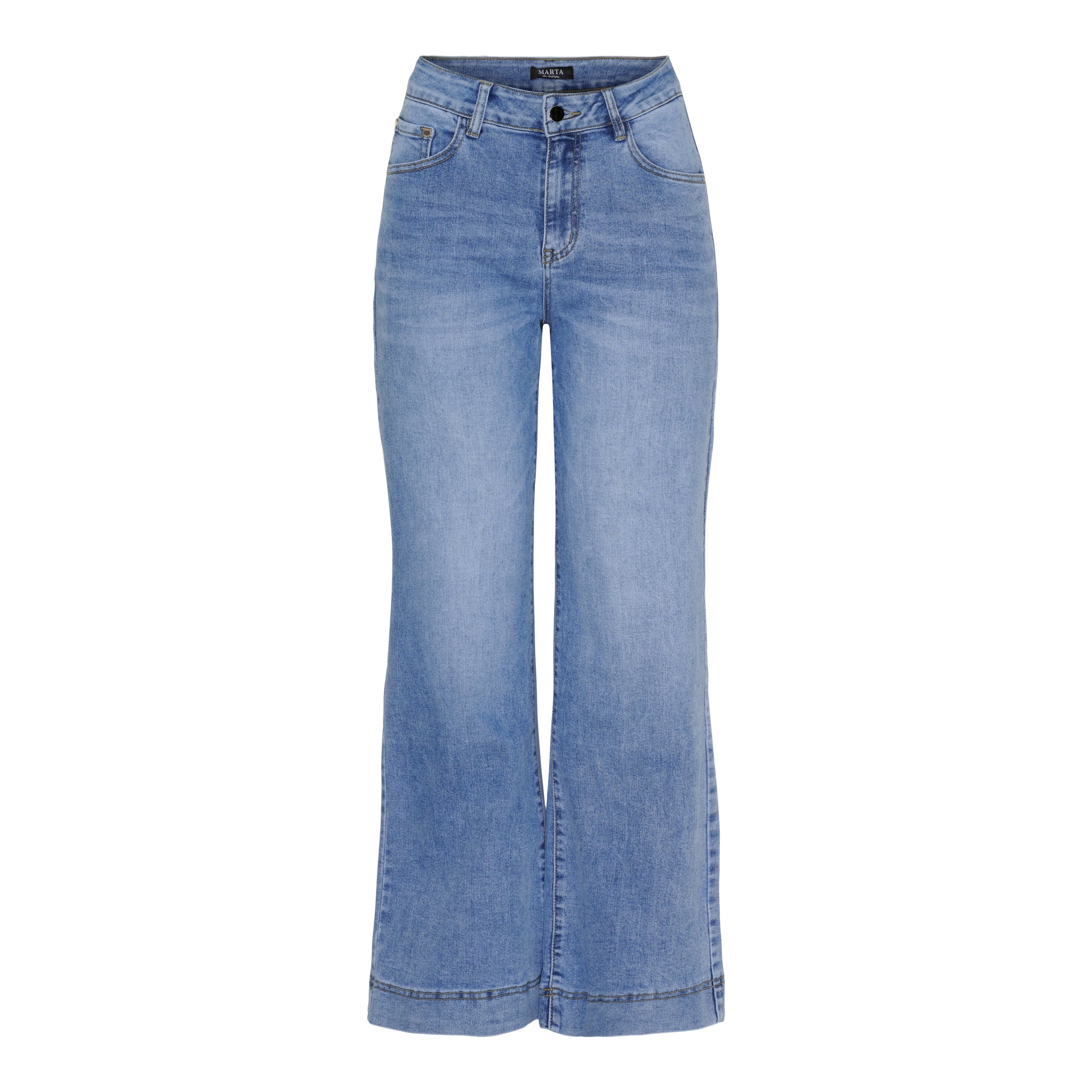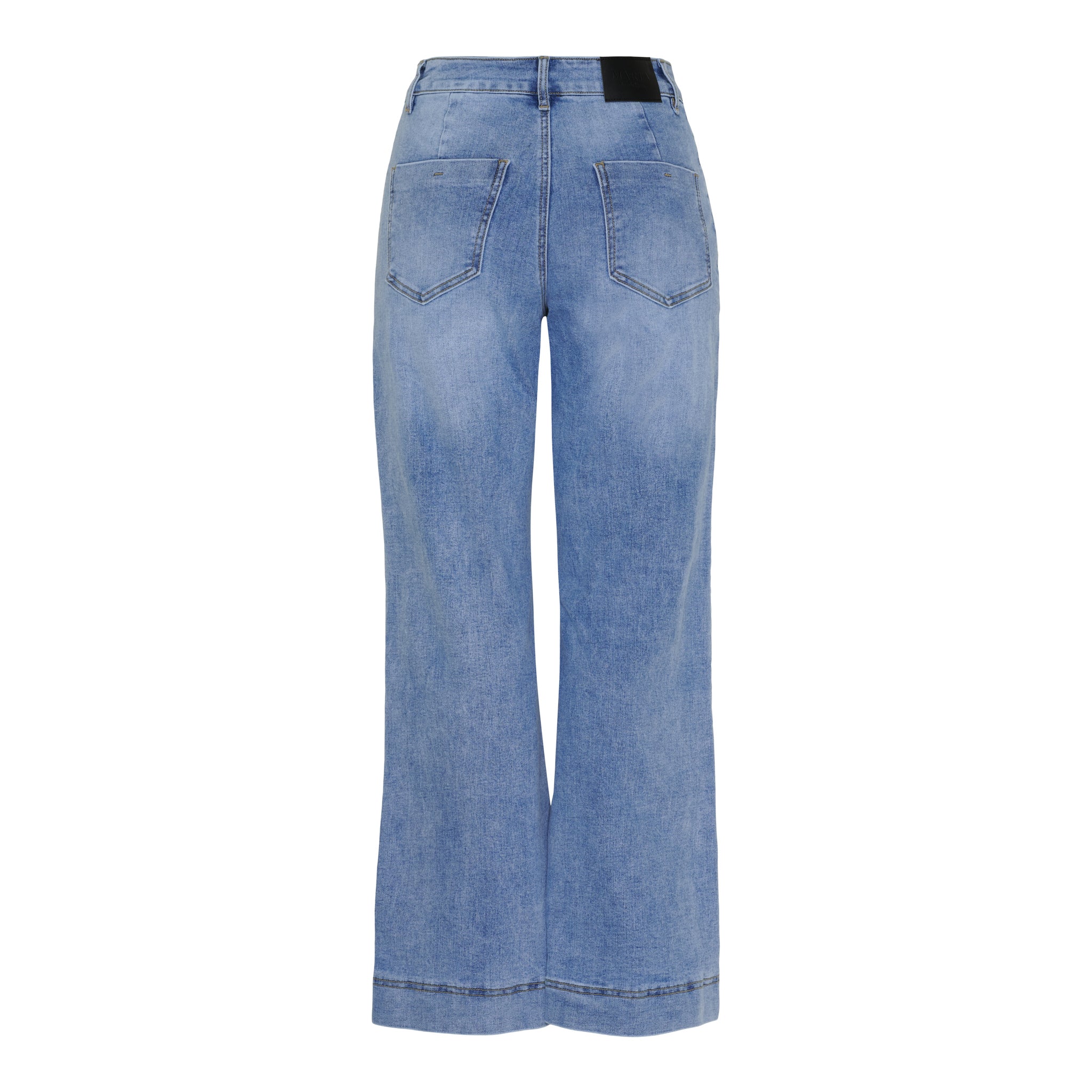 Jeansene er fremstillet i en blød og holdbar denimkvalitet, der sikrer komfort hele dagen. De har et tidløst fem-lommers design og en flatterende mellemhøj talje, som giver en elegant silhuet. Det lyse denimlook gør dem nemme at style med alt fra en simpel t-shirt til en feminin bluse eller jakke.