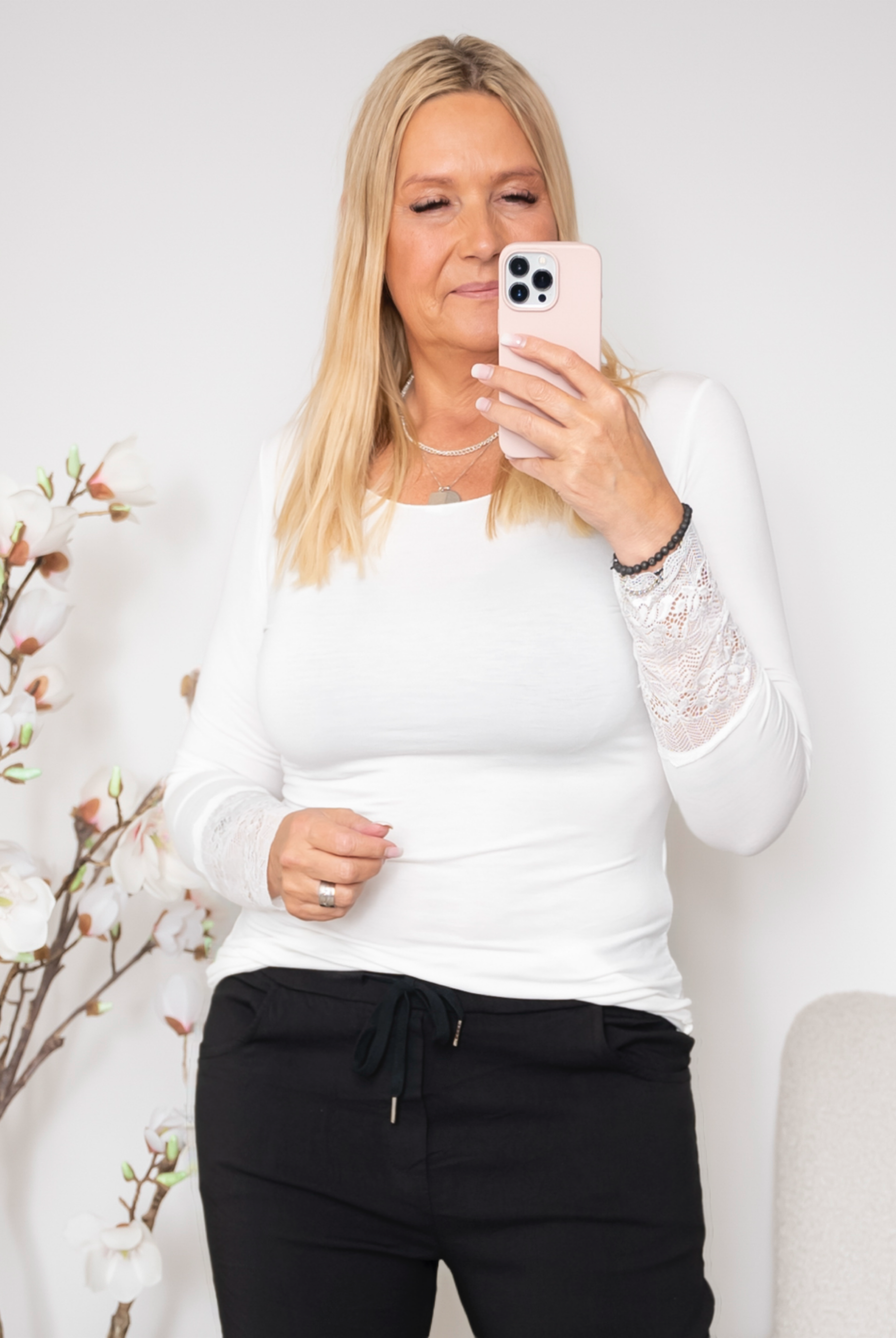 Skøn bluse fra Marta du Chateau med små flæseærmer og knapstolpe i udskæringen samt et fint mønsterprint i stoffet.