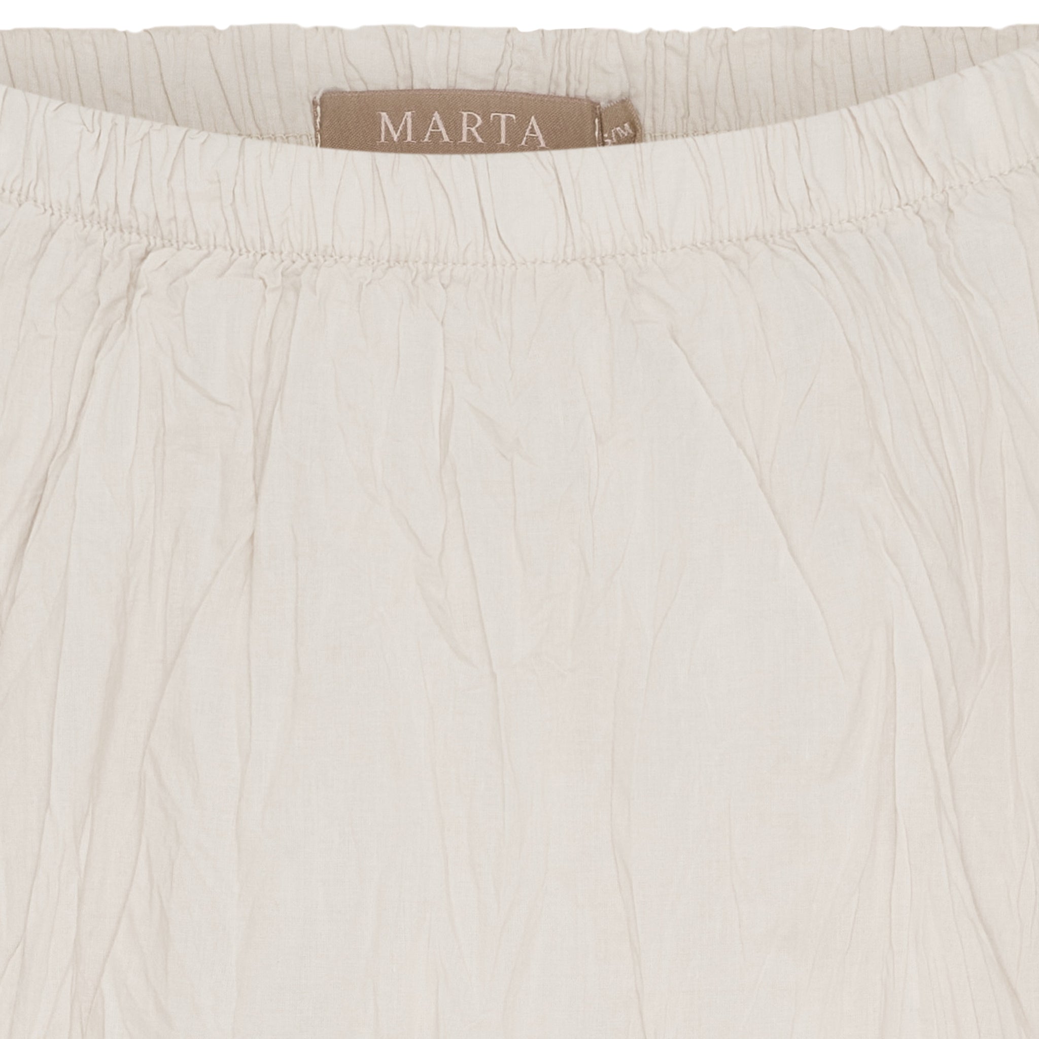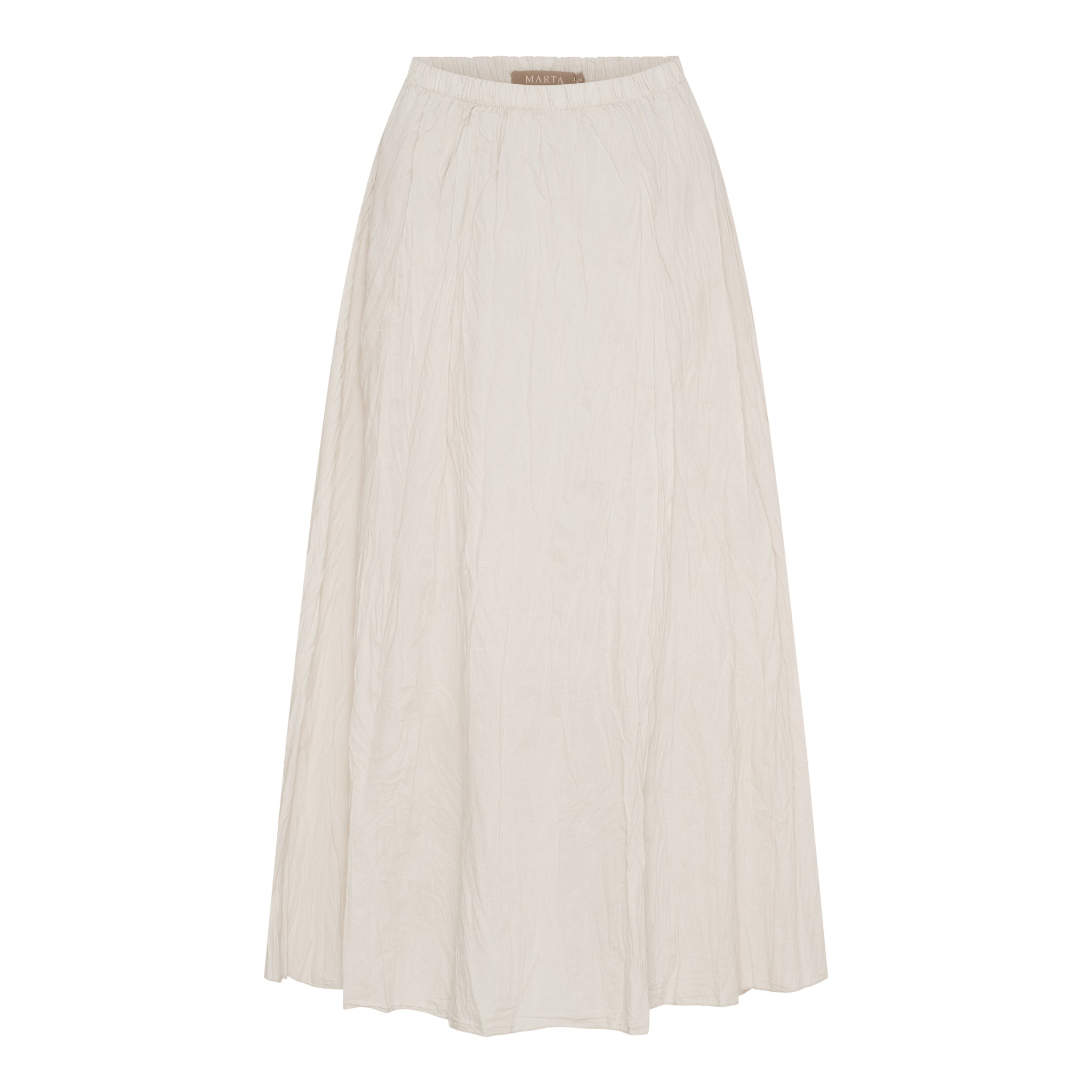 Denne lange nederdel kombinerer komfort med et smukt, naturligt udtryk. Den er fremstillet i en let og luftig bomuldskvalitet med et diskret krøllet look, som giver den et casual og feminint præg. Perfekt til sommerdage, ferier eller bare en afslappet dag, hvor du stadig vil føle dig pæn.