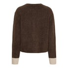 Denne strikcardigan kombinerer klassisk enkelthed med en legende detalje, der tilfører et personligt touch til dit outfit. Den bløde og let lodne kvalitet giver en behagelig og lun følelse, perfekt til lag-på-lag styling.