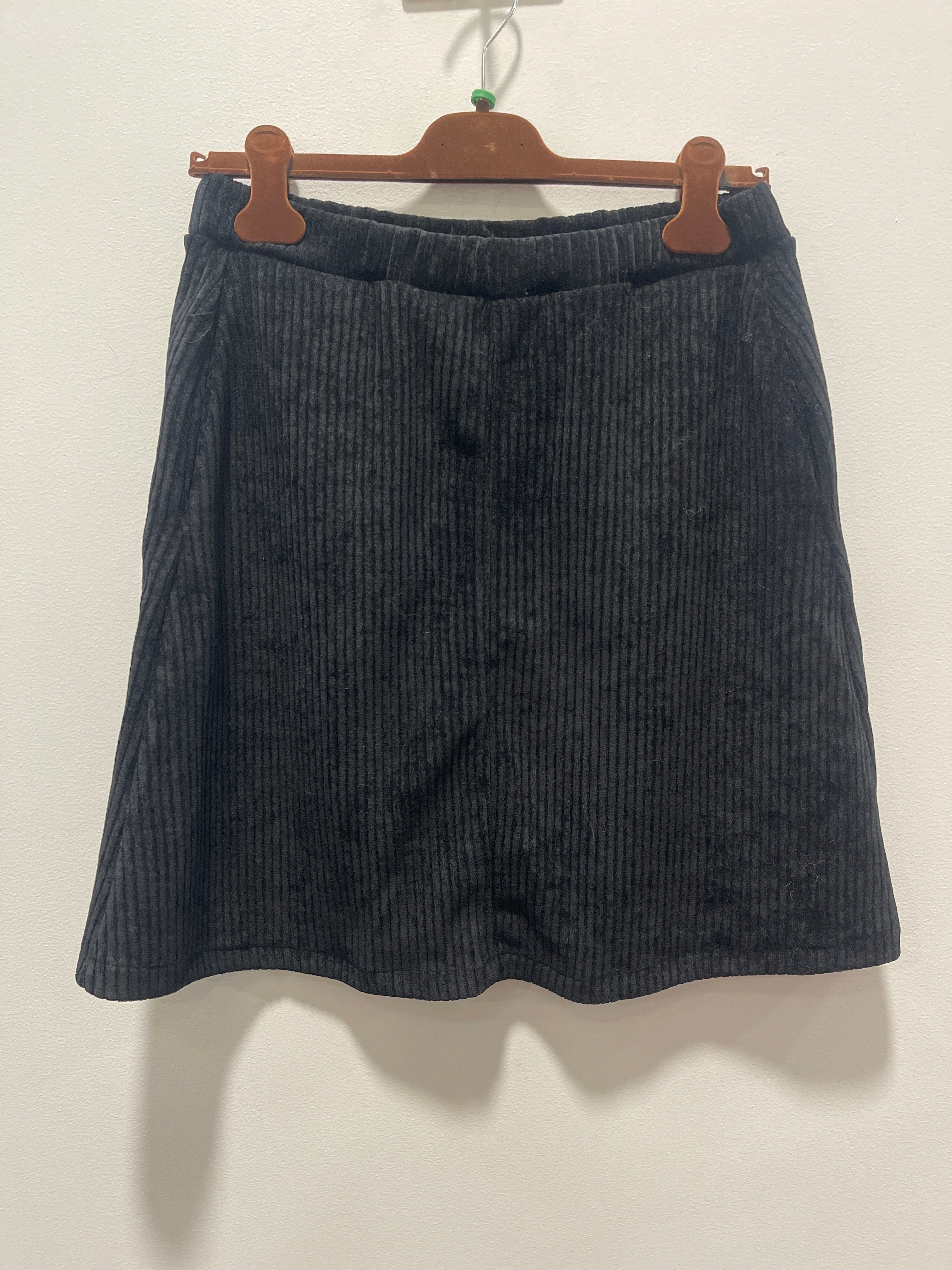 Denne nederdel forener blød struktur med et enkelt, tidløst snit. Den brede fløjlskvalitet giver et lækkert, taktilt udtryk, hvor de lodrette ribbaner tilfører dybde og et diskret, elegant spil i stoffet. Pasformen er let A-formet, hvilket giver et naturligt fald og en flatterende silhuet, der er nem at style både casual og mere dressed.
