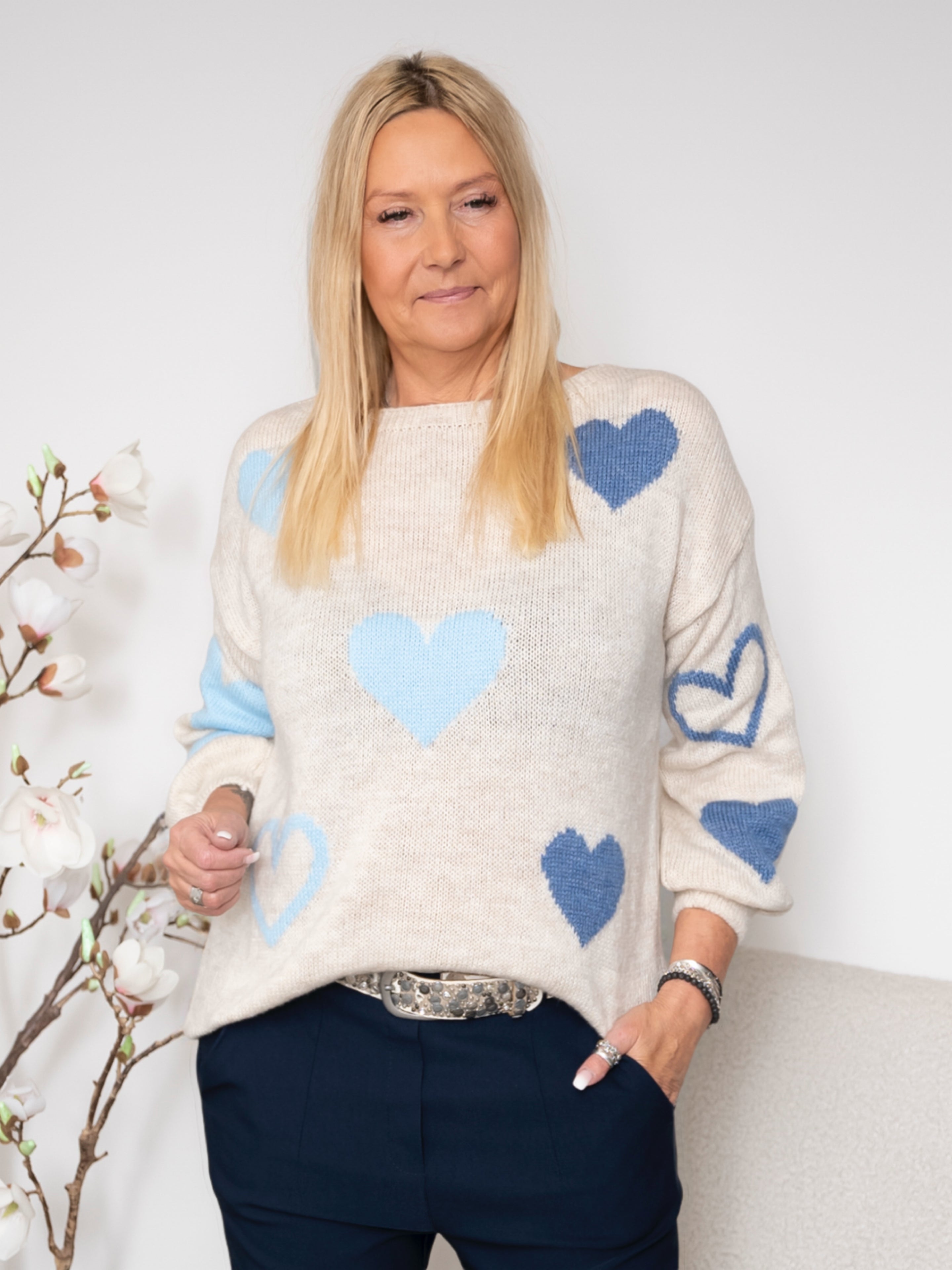 Giv din garderobe et strejf af charme med denne søde striktrøje. Det unikke hjertemønster skaber et feminint og legende udtryk, mens den løse pasform sikrer maksimal komfort. Perfekt til hyggelige dage derhjemme eller som et stilfuldt touch til dit hverdagslook.
