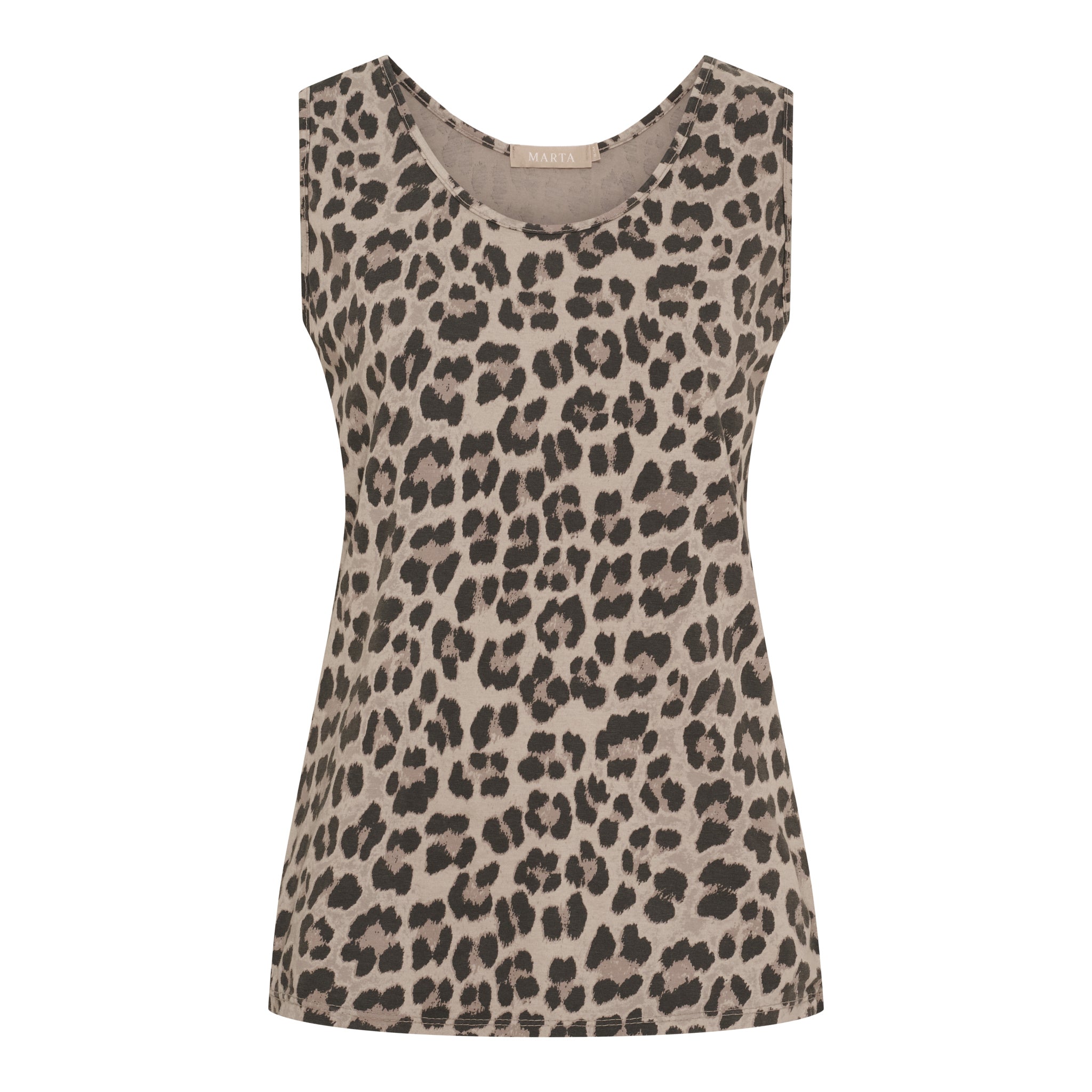 Denne leopardmønstrede top er indbegrebet af effortless chic. Det klassiske dyreprint kombineret med den ærmeløse, enkle silhuet skaber en top, der både kan bruges til hverdag og styles op til aftenbrug.