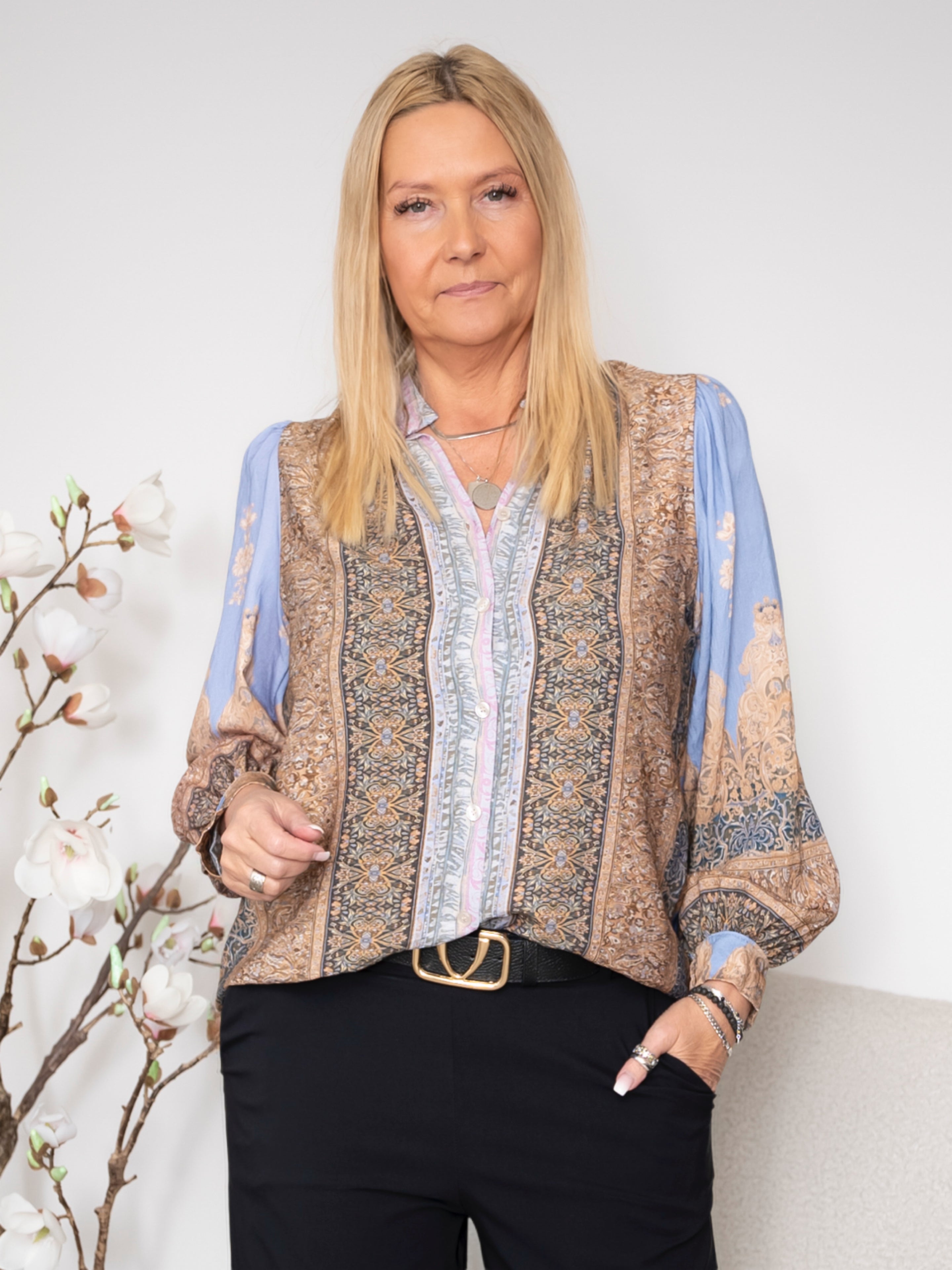 En alsidig skjorte, der nemt kan styles med både bukser, jeans og nederdele – perfekt til et feminint og stilfuldt hverdagslook.