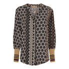 Skjorten har en flatterende, løs pasform og er lavet i en let, blød viskosekvalitet, der føles behagelig mod huden. Den klassiske knaplukning foran og den feminine V-udskæring gør skjorten nem at style til både hverdag og fest.