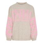 Denne striktrøje med stort tekstmotiv bringer både kant og komfort til vintergarderoben. Det oversized design og den chunky strikkvalitet giver en afslappet silhuet med masser af personlighed og varme.