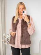 Lækker, blød vest i imiteret pels – perfekt til at skabe et eksklusivt og hyggeligt look i de køligere måneder. Den åbne pasform uden lukning gør den nem at smide over både strik, skjorter og kjoler, og den tilfører øjeblikkeligt varme og stil til dit outfit.