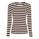 Denne stribede langærmede top er en tidløs klassiker, der passer perfekt ind i enhver basisgarderobe. Den tætsiddende pasform og det stretchy, ribbede materiale giver en flatterende silhuet og høj komfort hele dagen.