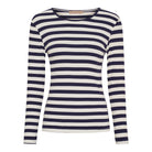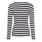 Denne stribede langærmede top er en tidløs klassiker, der passer perfekt ind i enhver basisgarderobe. Den tætsiddende pasform og det stretchy, ribbede materiale giver en flatterende silhuet og høj komfort hele dagen.
