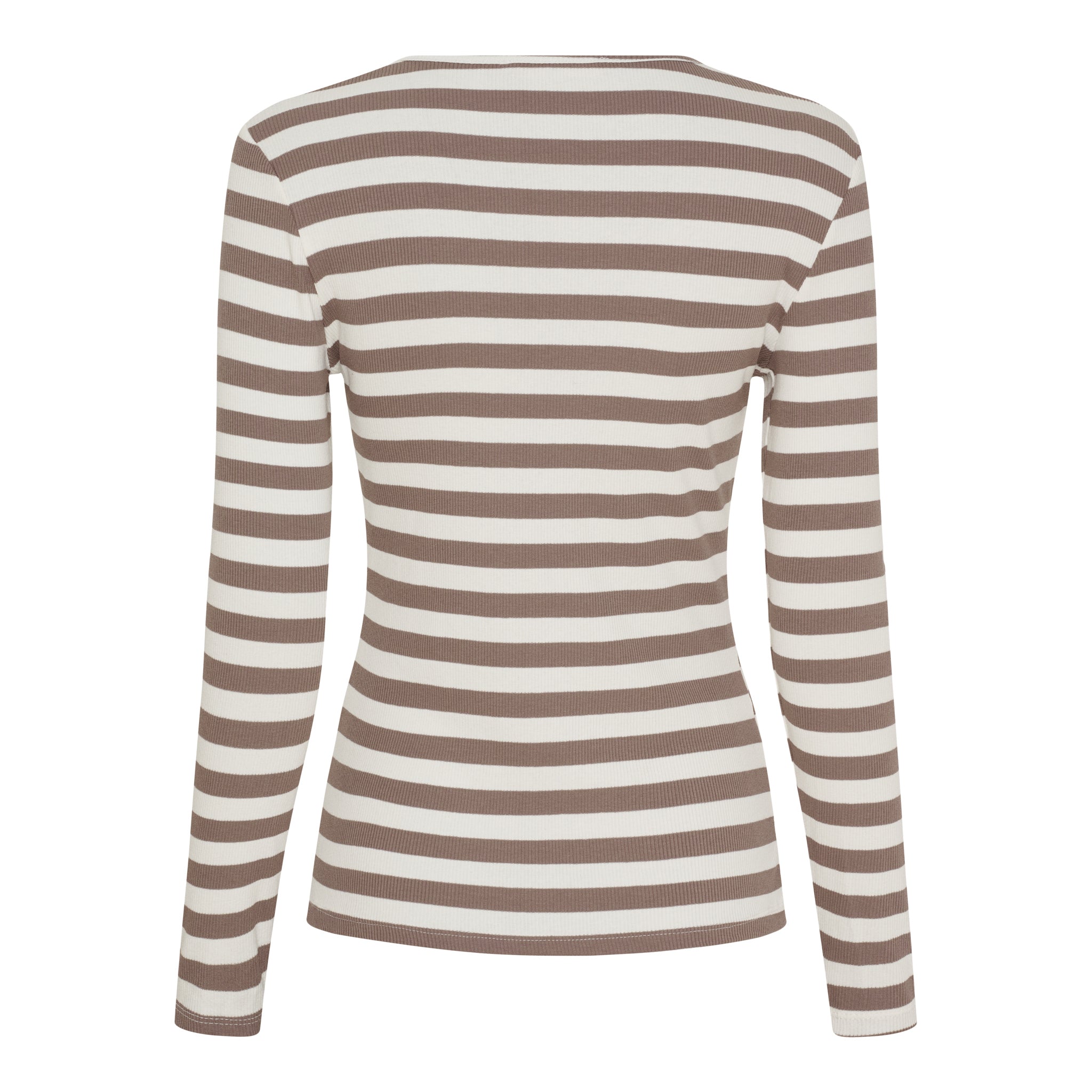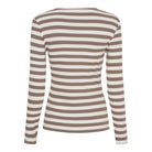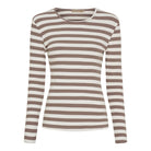 Denne stribede langærmede top er en tidløs klassiker, der passer perfekt ind i enhver basisgarderobe. Den tætsiddende pasform og det stretchy, ribbede materiale giver en flatterende silhuet og høj komfort hele dagen.