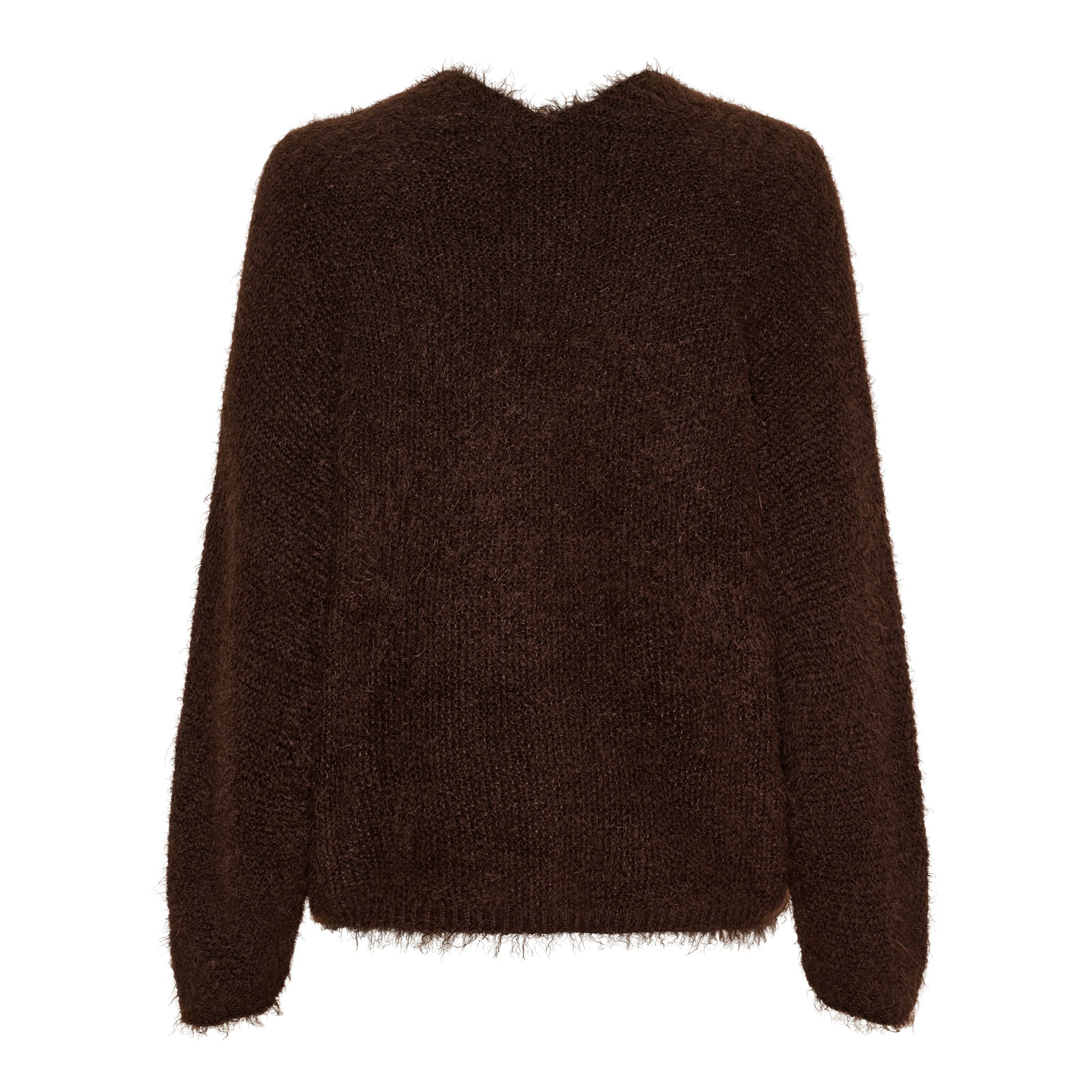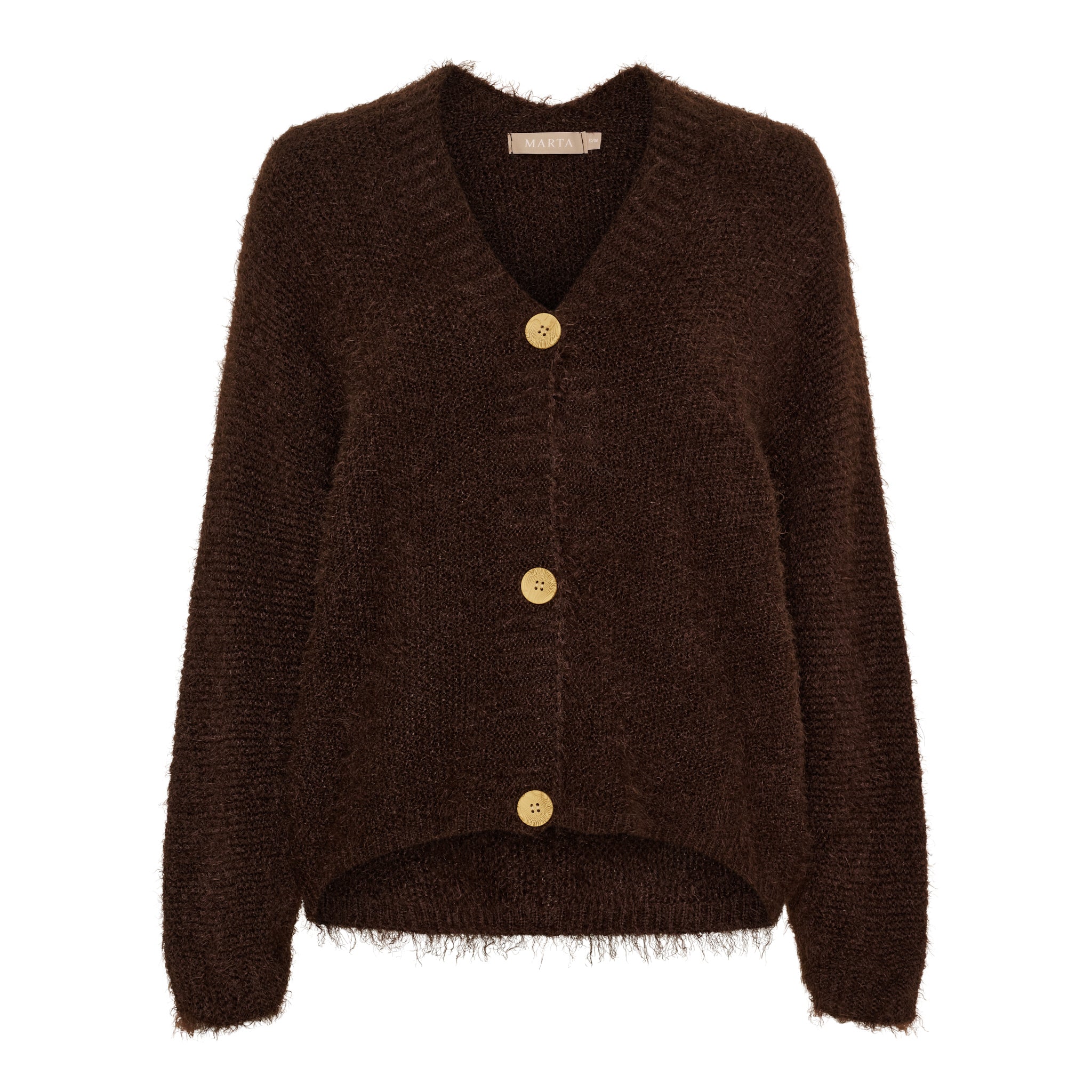 Denne bløde cardigan er det perfekte valg til dig, der ønsker komfort og stil i ét. Den fluffy strik og rummelige pasform gør den ideel til lag-på-lag looks, mens de store knapper foran tilfører et moderne og rustikt udtryk.