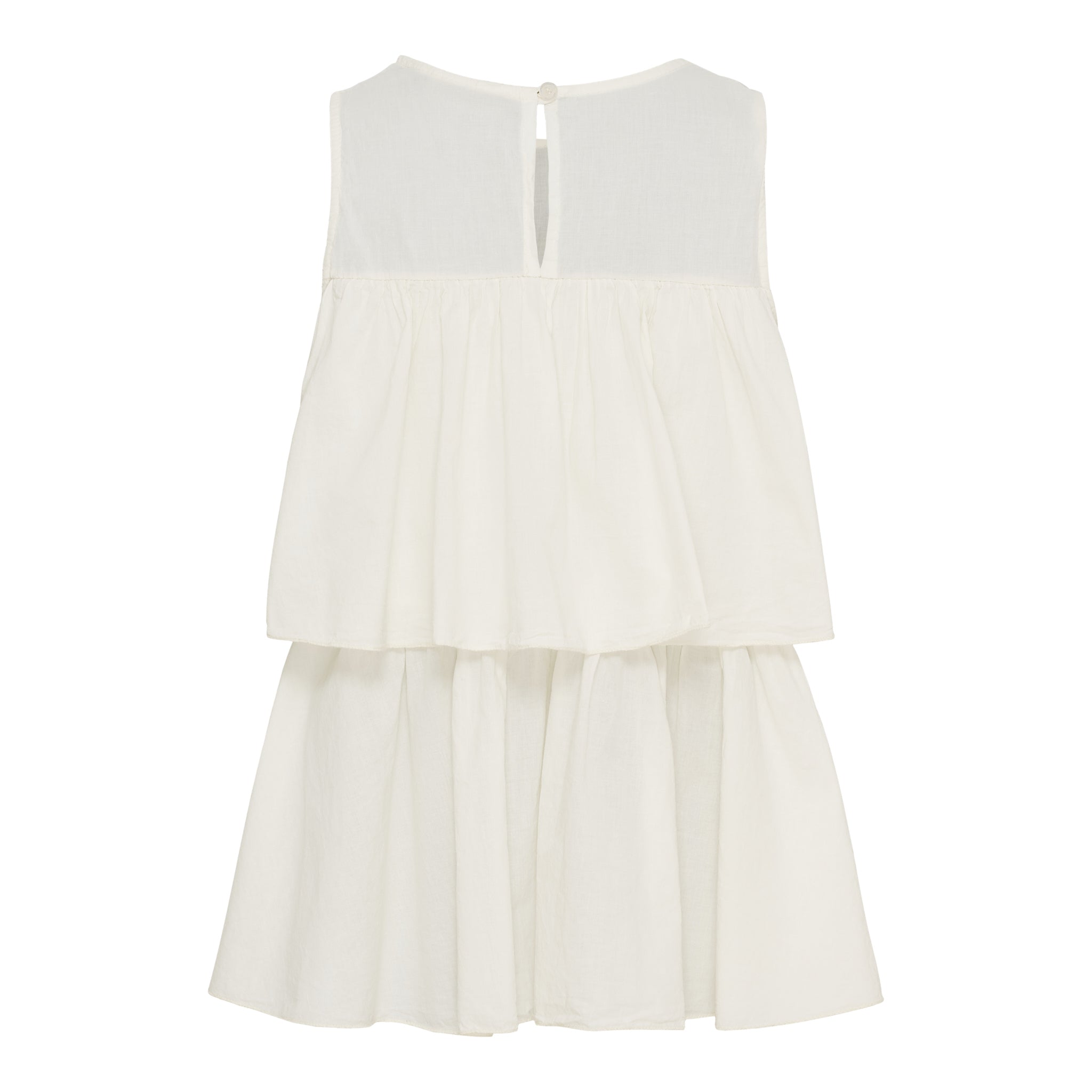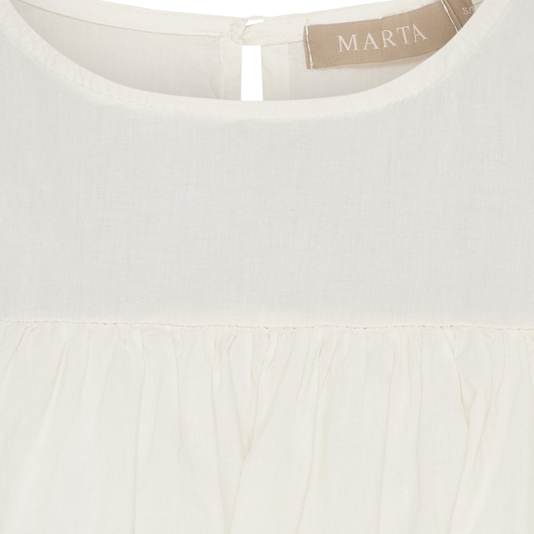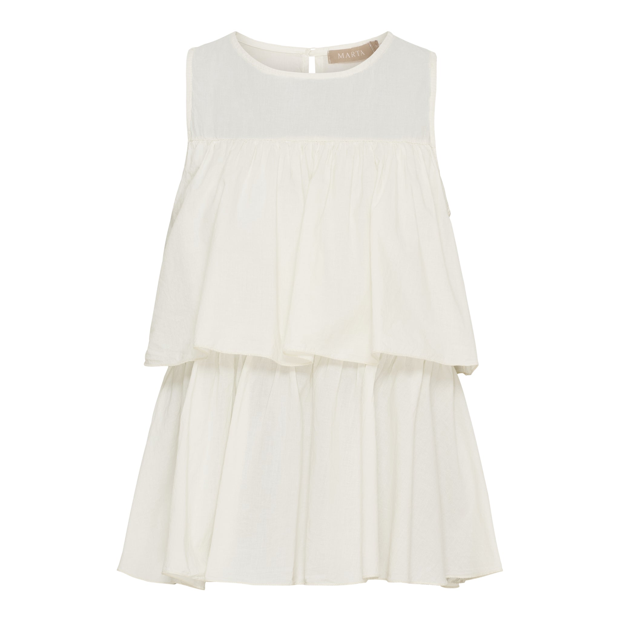 Toppen er lavet i en blød bomuldskvalitet, som føles dejlig mod huden, og lukkes i nakken med en lille knap for et elegant finish.