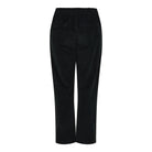 Bukserne har en klassisk, lige pasform med elastik i baglinningen, hvilket sikrer en behagelig og fleksibel pasform. Designet fuldendes med diskrete baglommer, bæltestropper og skjult lukning foran – ideelt til både afslappede og mere formelle looks.