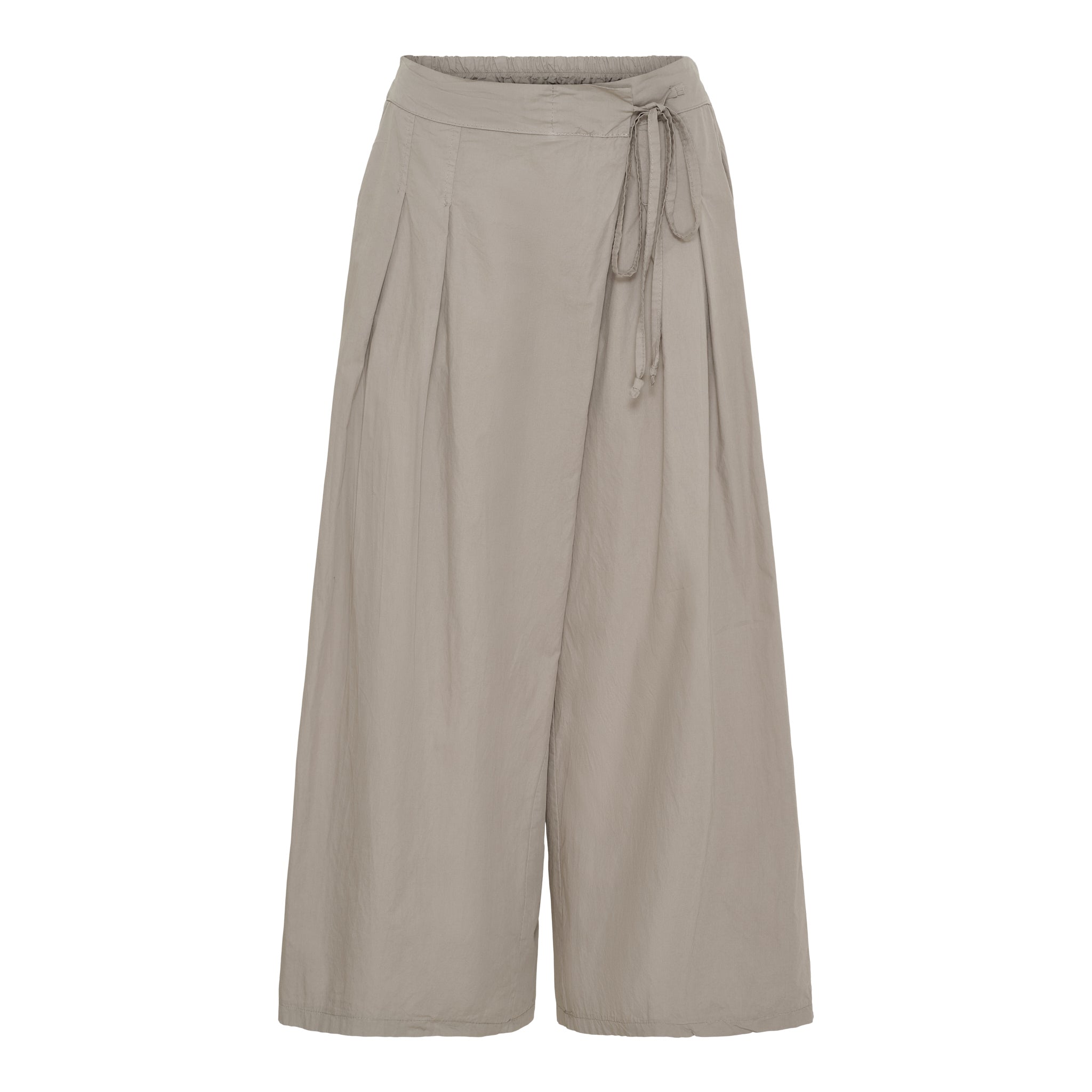 Disse vidde bukser kombinerer det bedste fra både stil og komfort. Med deres luftige snit, cropped længde og smukke slå-om effekt foran, får du en moderne og afslappet silhuet, der emmer af sommerstemning.
