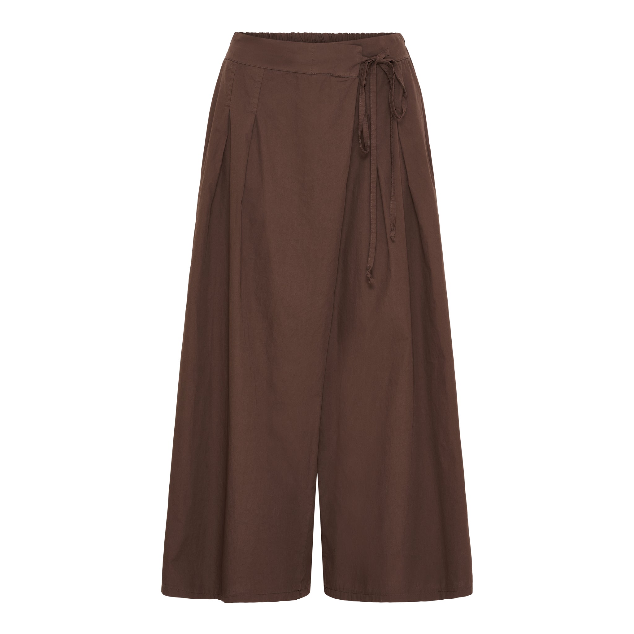 Disse vidde bukser kombinerer det bedste fra både stil og komfort. Med deres luftige snit, cropped længde og smukke slå-om effekt foran, får du en moderne og afslappet silhuet, der emmer af sommerstemning.